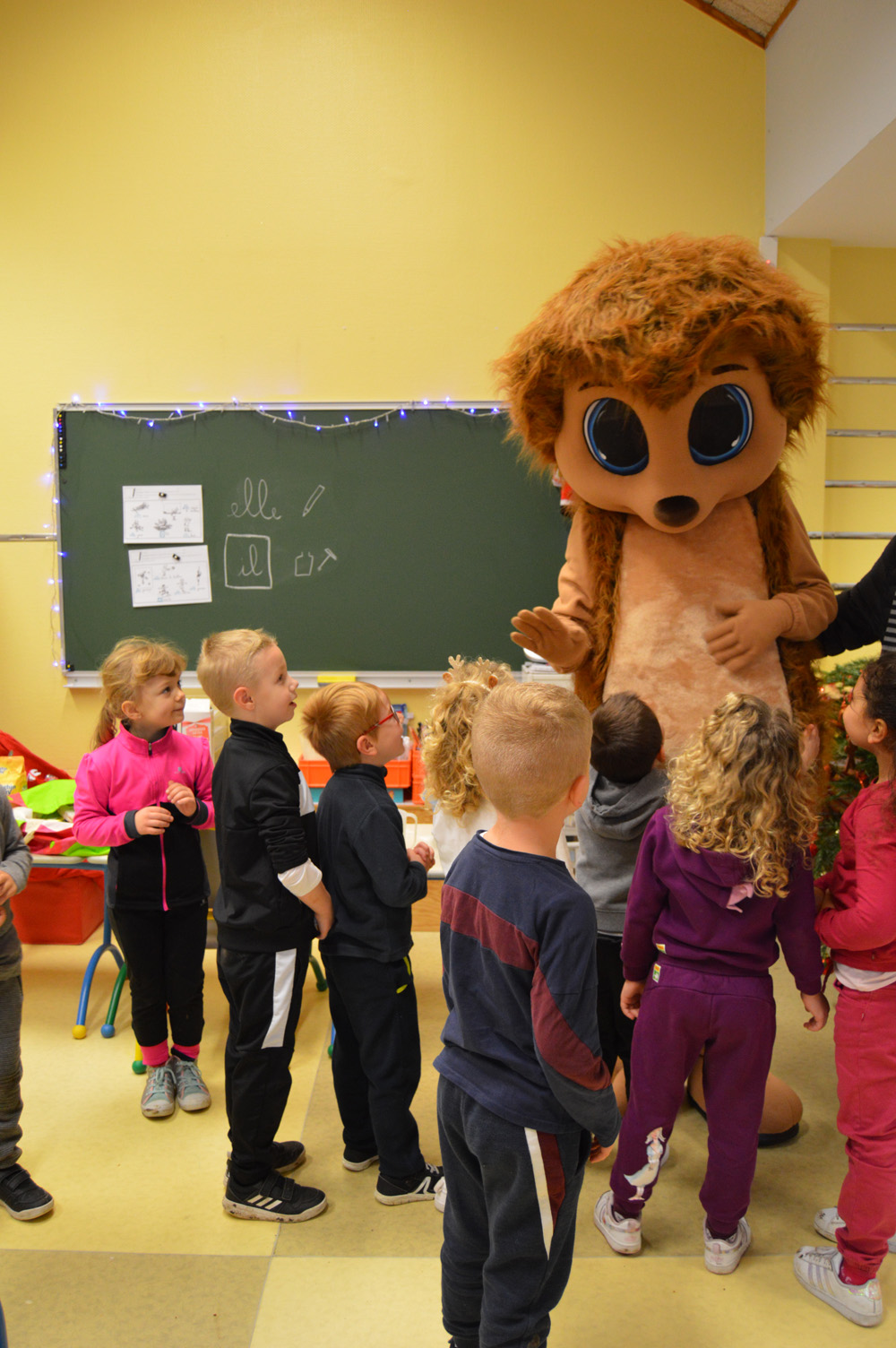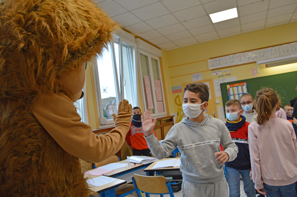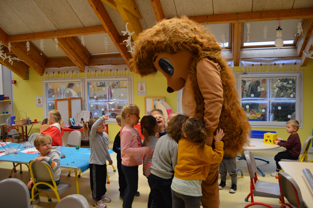 Les enfants lui ont réservé un accueil royal ! Maternels et élémentaires ont été séduit par ses couleurs, ses poils hirsutes et impressionnés par sa taille. Nombreux d’entre eux ont souhaité lui faire un câlin, des tapes dans la main ou encore lui envoyer des bisous. Nino et les 3-6 ans ont même chanté et dansé sur des airs entraînants de noël.