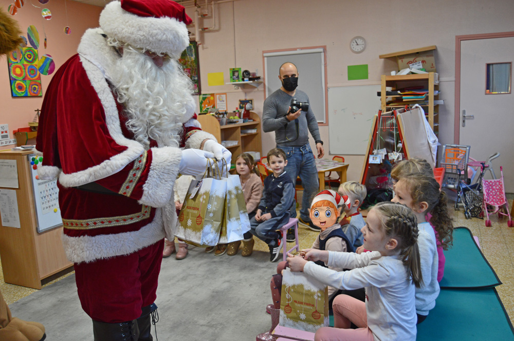 Nino a ainsi remis à chaque écolier un sachet de friandises composé d’une brioche, de deux clémentines et d’un chocolat. Père Noël est venu l’aider dans cette mission pour l’école Les Marronniers.