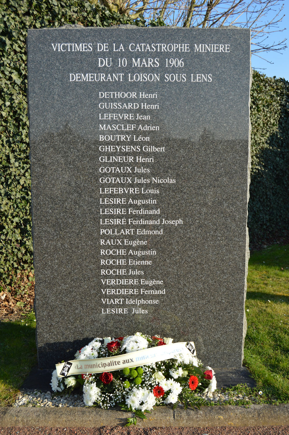 Les élus n’oublient pas les mineurs loisonnais décédés lors de la catastrophe minière du 10 mars 1906, dite de Courrières. C’est pourquoi ils se sont récemment retrouvés au cimetière communal, devant la stèle érigée en leur mémoire. Une gerbe de fleurs a été déposée et une minute de silence a été observée par le groupe avec beaucoup de solennité. Chaque élu a prononcé le nom d’un disparu pour ne pas oublier leur sacrifice.