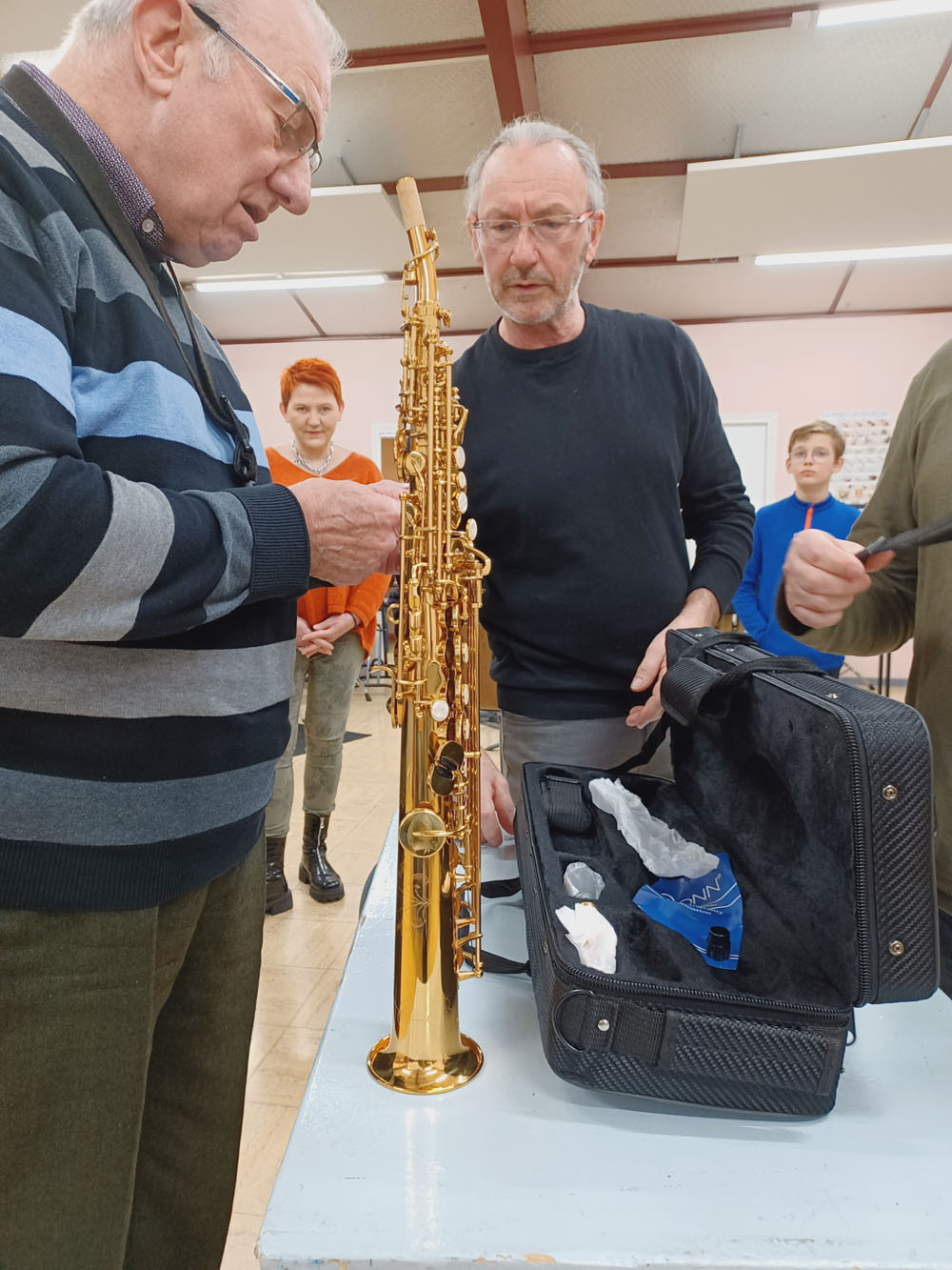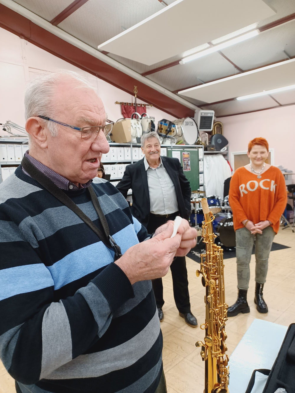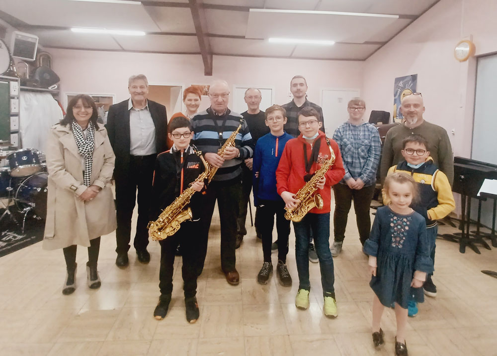 Hier, nos élus départementaux accompagnés de Madame Marie-Hélène MARLIER, Conseillère Municipale, étaient au foyer L. Harmant pour remettre un saxophone soprano à l’école de musique de l’Harmonie « la Jeunesse ». Monsieur David LANNOY, directeur de l’école, les a remerciés chaleureusement pour ce présent. Le professeur de saxo étant sur place, il en a fait une petite démonstration pour le plus grand plaisir des participants.