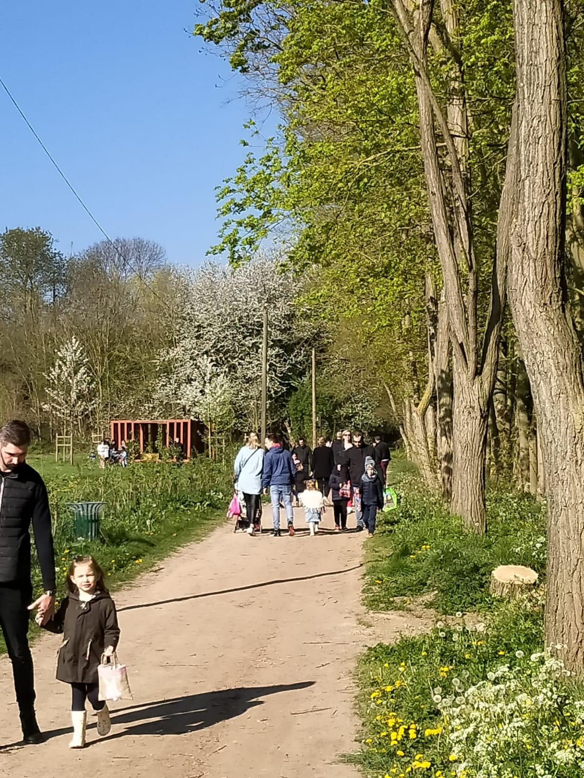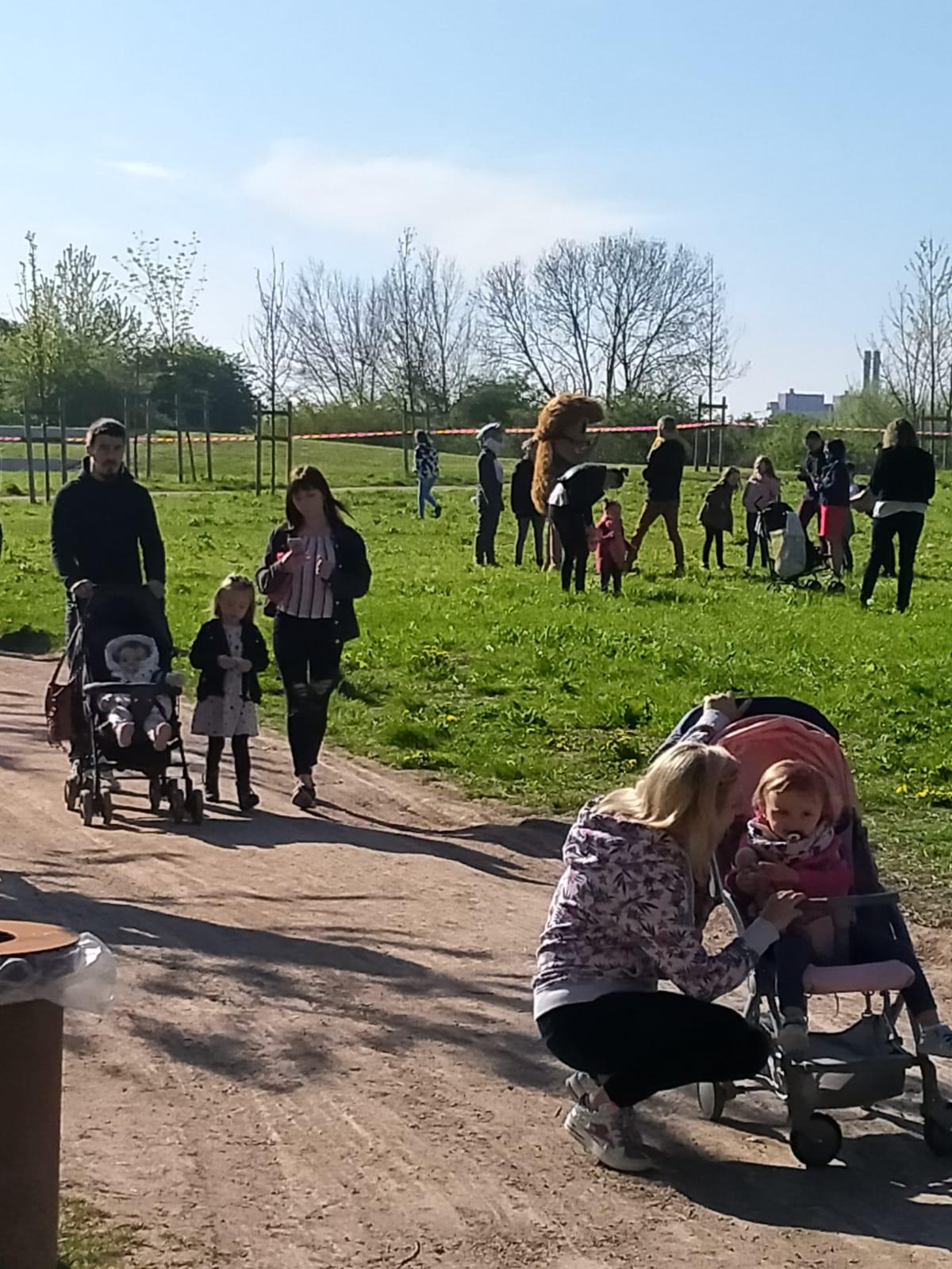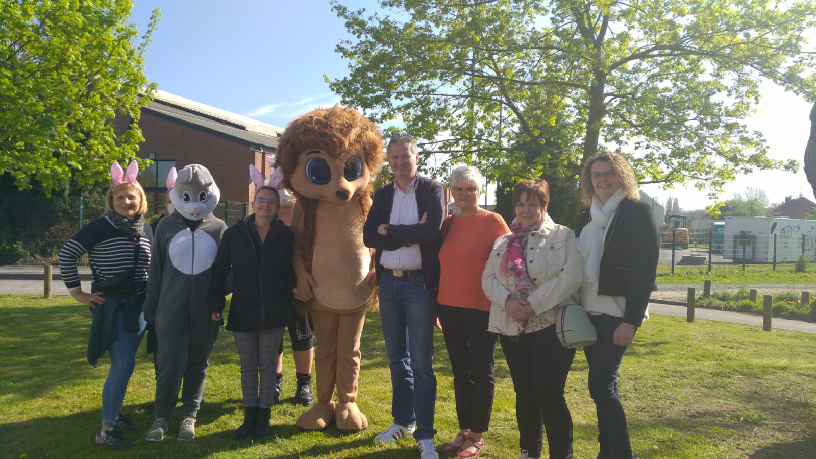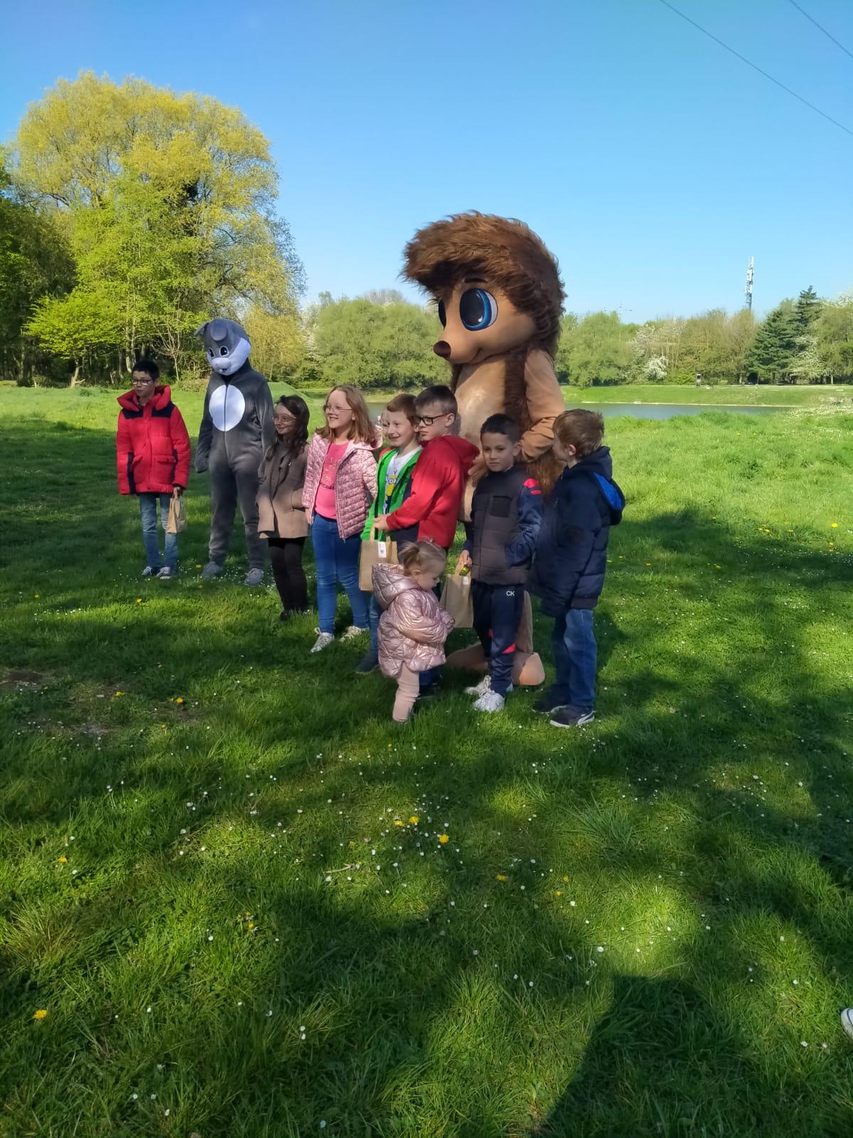 Des œufs ont ainsi été éparpillés par nos équipes d’animation dans la zone herbeuse reliant notre base de plein air au canal de la Souchez. Les bambins ont pris grand plaisir à les ramasser accompagnés de leurs parents et grands-parents. Pour l’occasion, Nino notre Hérisson était présent ainsi que le Lapin de Pâques. Nos deux invités de prestige ont même effectué quelques pas de danse en fin de matinée.