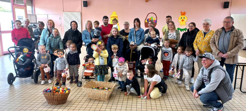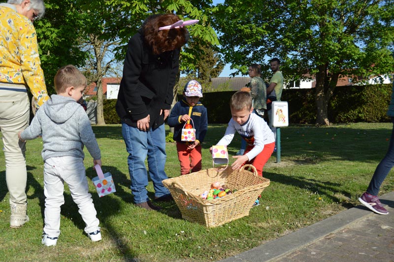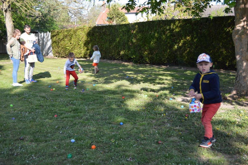 Les assistantes maternelles du territoire, les enfants qu’elles gardent et leurs familles étaient conviés à l’évènement sur inscription. Au total, 27 enfants âgés de 11 mois à 10 ans sont partis à la recherche des mille œufs colorés éparpillés sur le site ! Ils se sont fait aider par les adultes présents, dont Monsieur David Guidé, Conseiller Municipal Délégué, et Madame Micheline Mayeux, Conseillère Municipale.