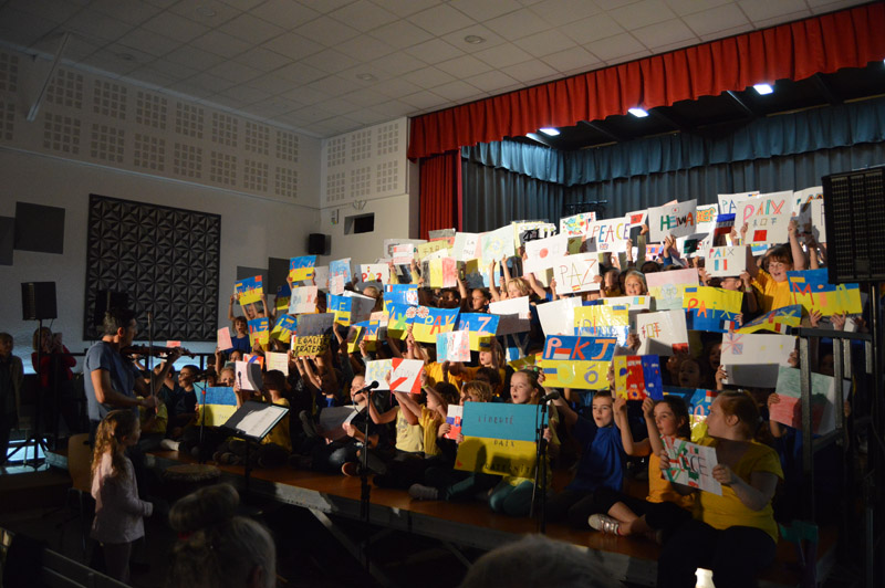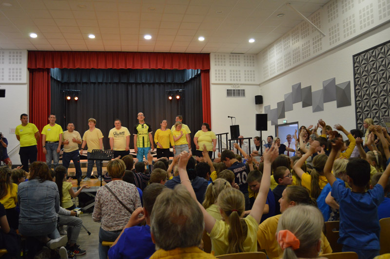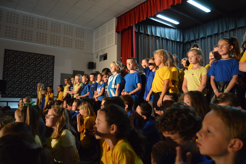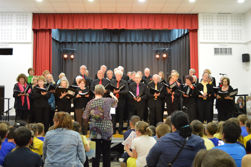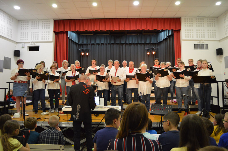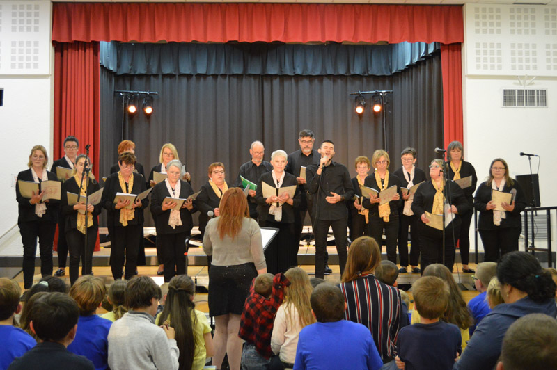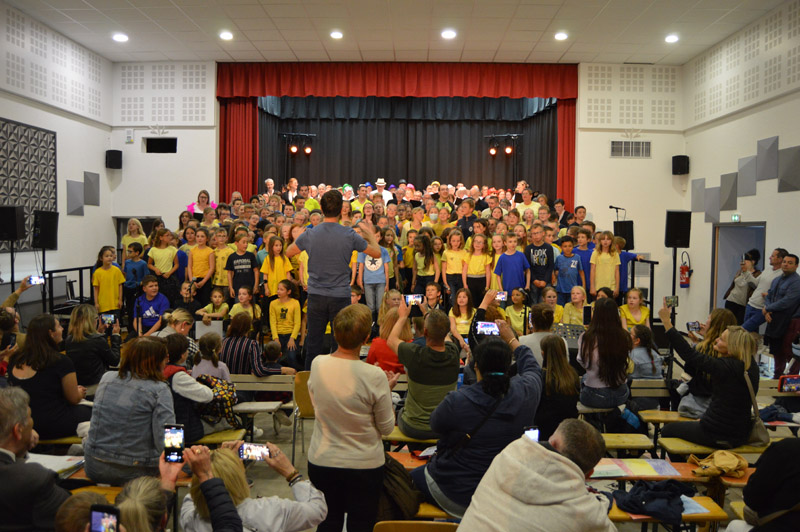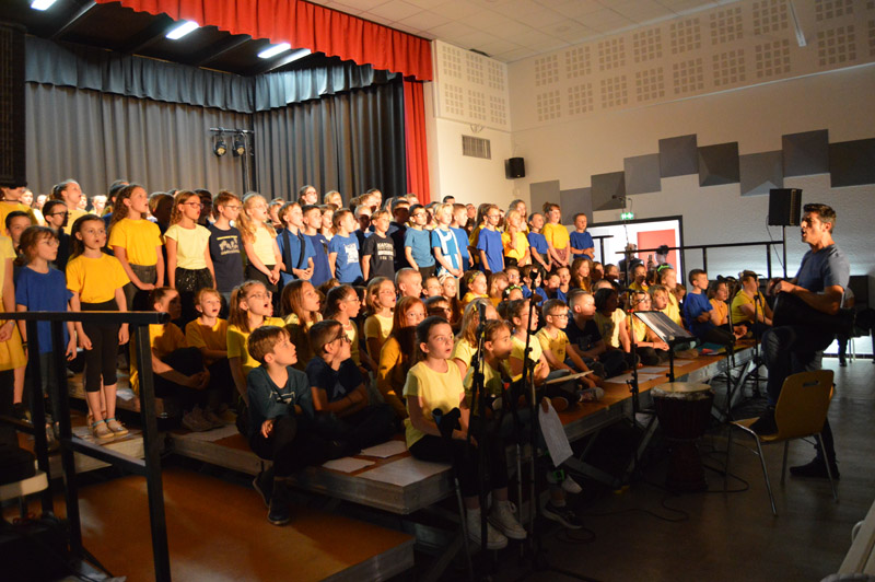 Les choristes sont tous remontés sur scène pour un final merveilleux. Au total, ils étaient 250 à unir leurs voix sous la baguette de Sébastien Lopes, intervenant musical dans les écoles.