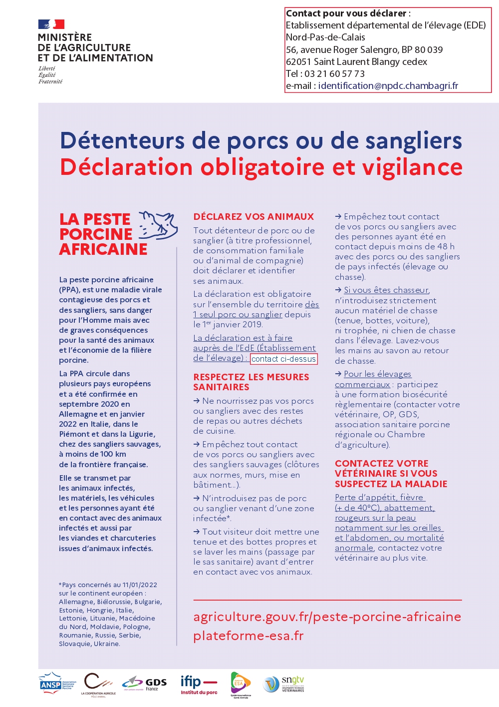 Déclaration obligatoire et vigilance aux détenteurs de porcs et de sangliers