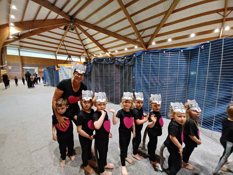 Les maternels ont aussi présenté quelques chants aux parents, néanmoins les bambins ont plus évolué en dansant. Parés de leur costume d’animaux, ils ont animé les diverses chansons interprétées par Thomas, ses musiciens et Sébastien.