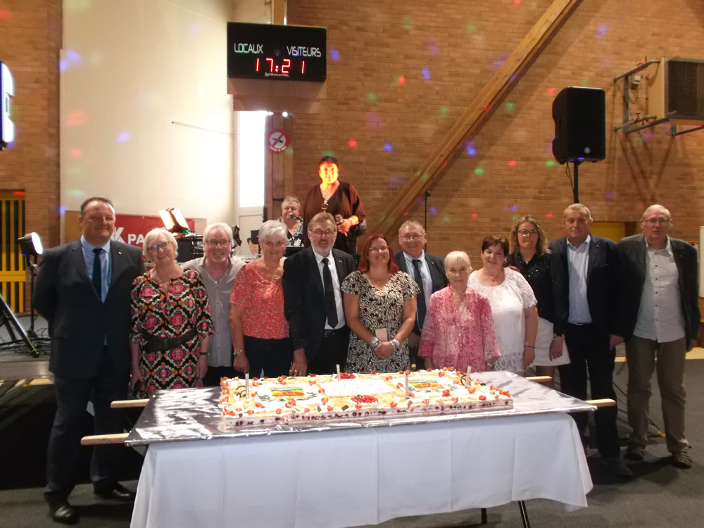 214 personnes ont ainsi pu déguster un repas de fête préparé avec grand soin par le traiteur Lebrun, situé à Wavrin. L’ambiance a été assurée par Marie-Pierre qui a interprété avec brio des grands classiques de la chanson française et internationale, accompagnée de Momo au synthé. La piste de danse a d’ailleurs été foulée à plusieurs reprises par les convives qui s’y sont donnés à cœur joie !