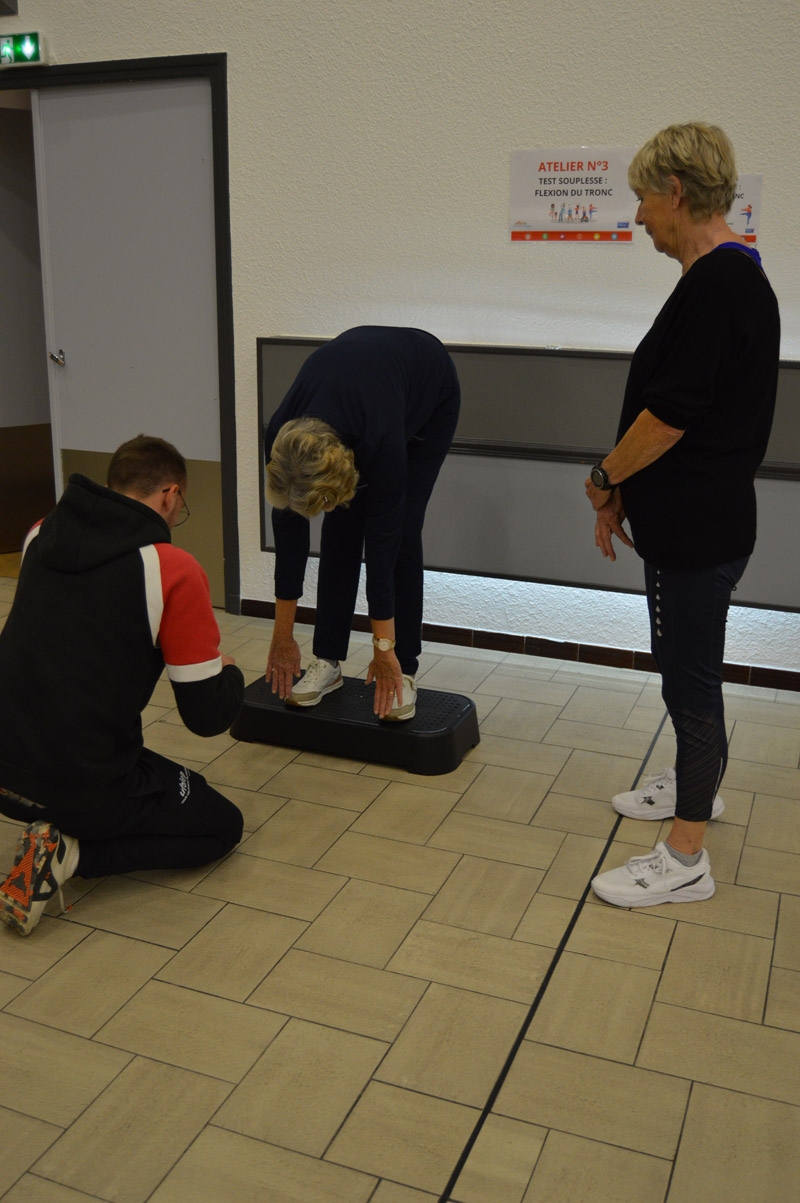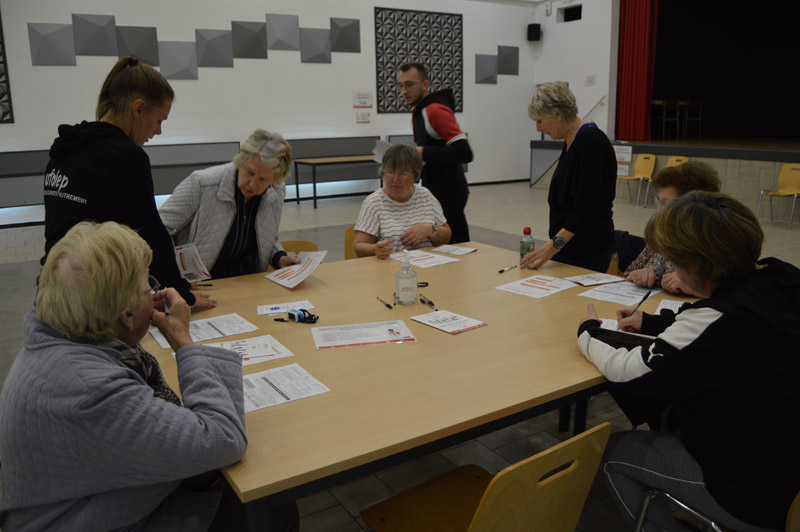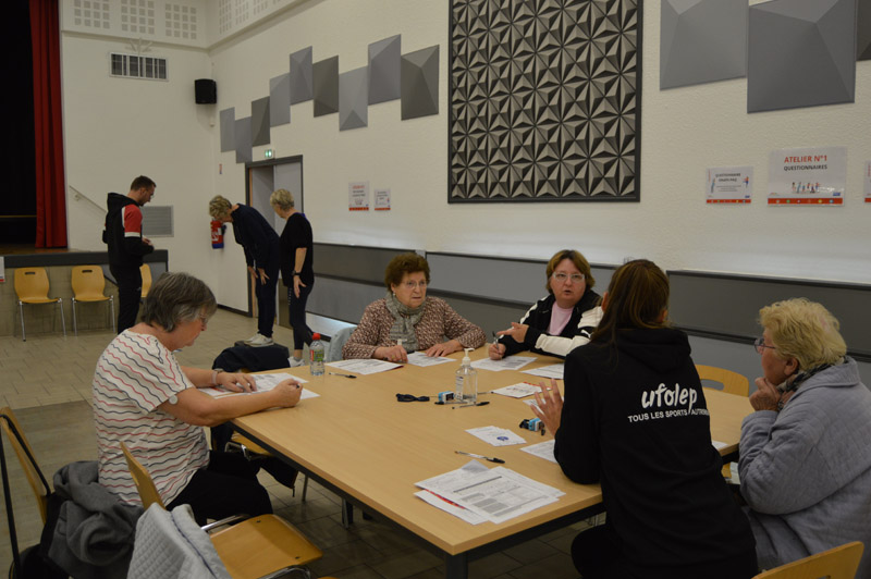 12 Loisonnais ont ainsi fait le bilan de leur forme physique en participant à divers ateliers. D’autres suivront lors de rendez-vous individuels. Tout d’abord, un questionnaire papier sur la condition générale de la personne ainsi que ses habitudes (sédentaire ou non). Puis, place aux exercices : équilibre, endurance, souplesse des membres inférieurs et force de préhension (force de la main). L’animatrice et son collègue Loïc ont accompagné les différents participants en les encourageant et en les conseillant dans leurs efforts.