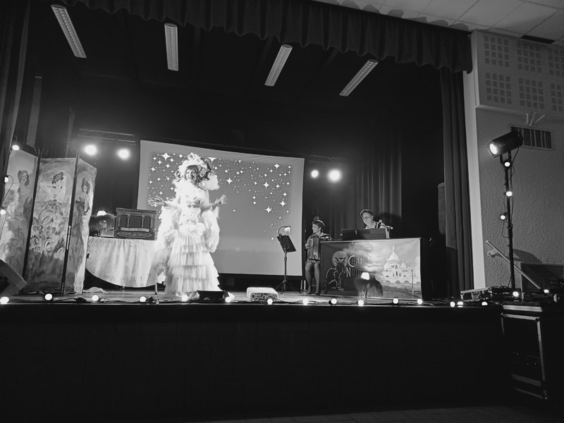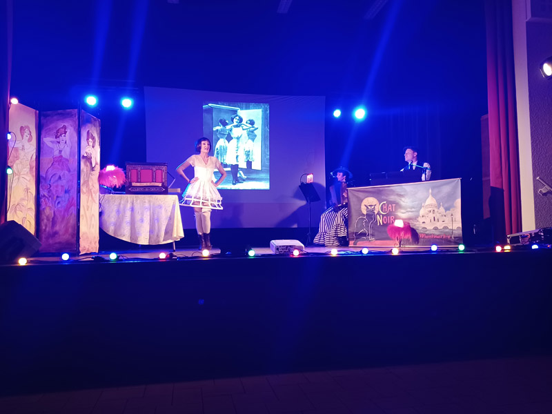 Marielle Duroule, chanteuse danseuse et comédienne, était accompagnée de Claude Chevalier à l’accordéon et de Fabien Damide au piano. A eux trois, ils ont emmené le public dans le passé en interprétant les tubes des années folles. Ils ont partagé leur bonne humeur et leur dynamisme avec brio. Les spectateurs les ont longuement applaudis et ont adoré ce voyage nostalgique rempli de souvenirs et d’émotions.