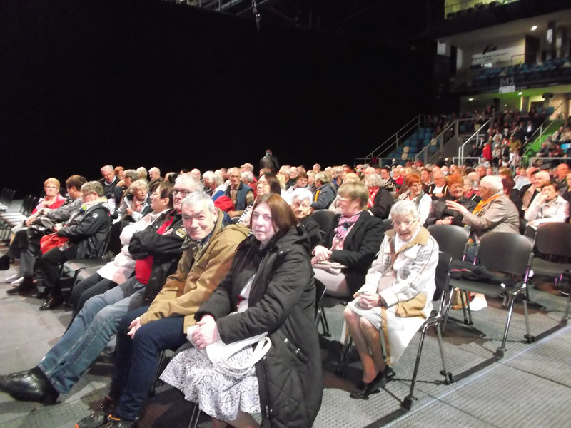 Pour achever ces journées de festivité, 74 séniors ont pris la direction du stade couvert liévinois afin d’assister à un spectacle de variété offert par le Département du Pas-de-Calais dans le cadre de la semaine nationale des retraités et personnes âgées. Chants, danses, plumes et paillettes ont fait pétiller les yeux de nos ainés qui ont grandement apprécié cet après-midi festif et féérique. De plus, chaque participant s’est vu s’offrir une bouteille isotherme par les services du Département.