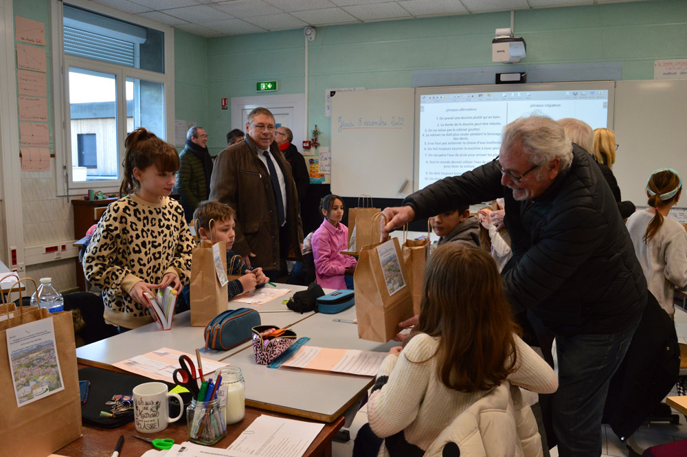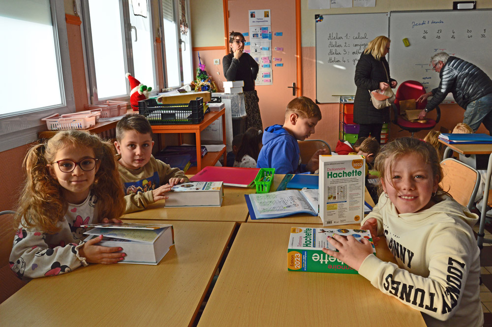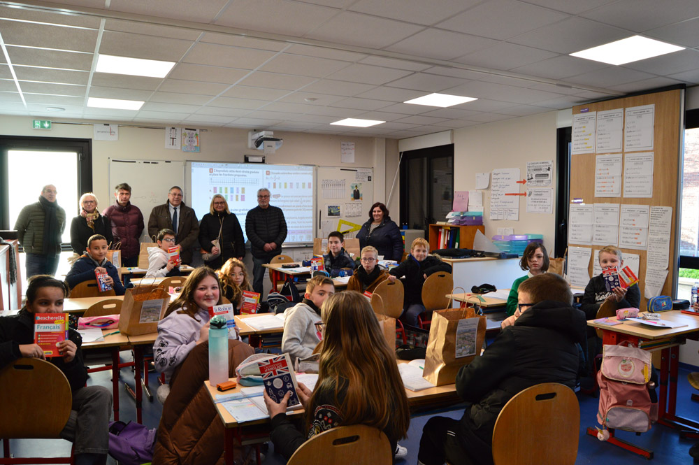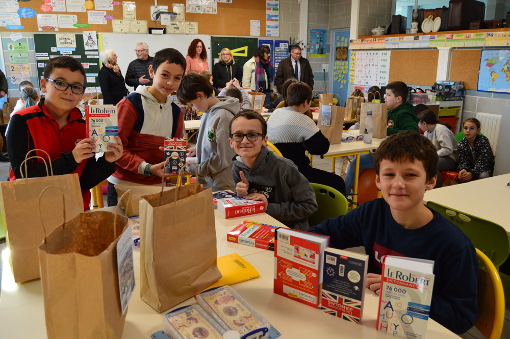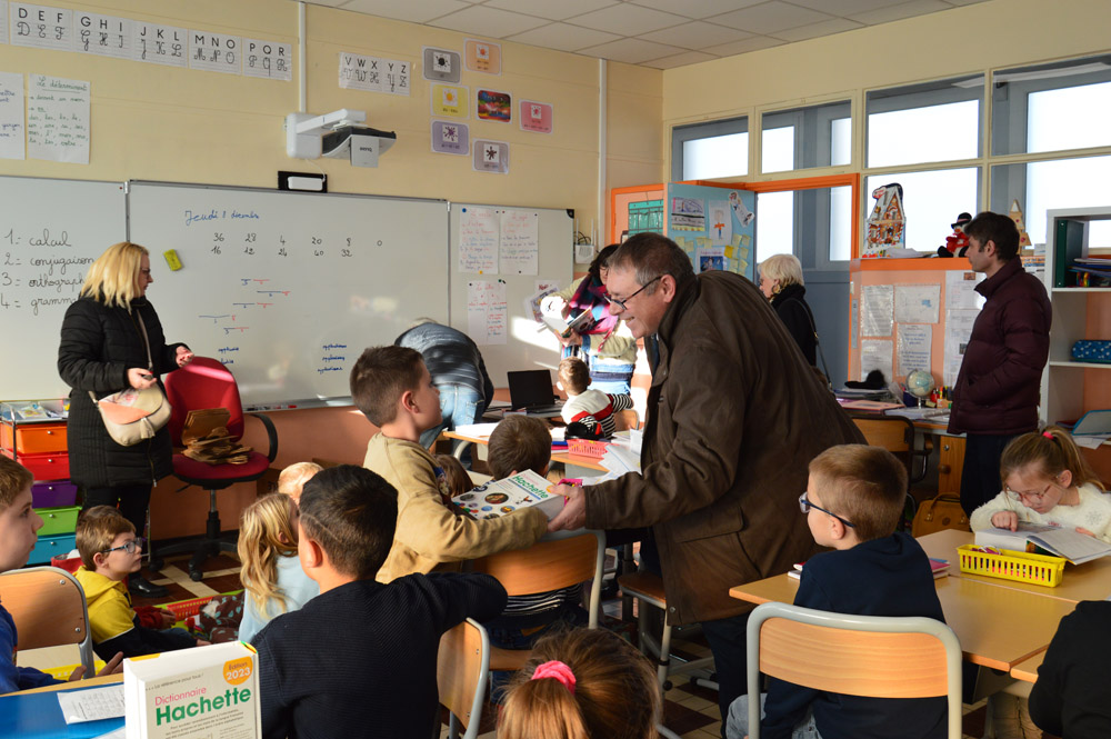 Les élus municipaux ont profité de l’occasion pour procéder à la remise annuelle des dictionnaires aux écoliers. Les CE2 ont reçu un dictionnaire encyclopédique ; il restera dans leur salle de classe jusqu’à la fin de leur cycle. Les CM2 ont eu un dictionnaire de français compact avec une couverture souple pour faciliter son transport et sa manipulation, un dictionnaire français-anglais et un bescherelle. Ils sont ainsi dotés d’ouvrages utiles pour la poursuite de leurs études au collège.