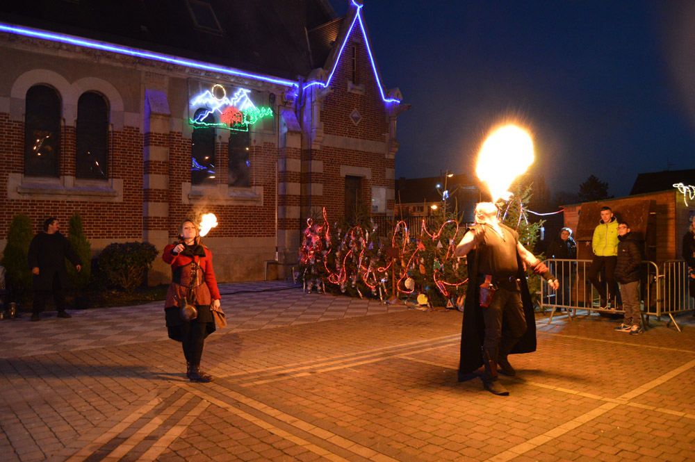 Un cracheur de feu et des échassiers lumineux ont fait le spectacle le samedi. Petits et grands ont été impressionnés par la précision de leurs gestes et la beauté de leur mouvement. Les musiciens de l’Harmonie « la Jeunesse » ont interprété plusieurs morceaux du répertoire Disney tandis que les enfants de l’école de musique ont chanté dans l’église Saint-Vaast.