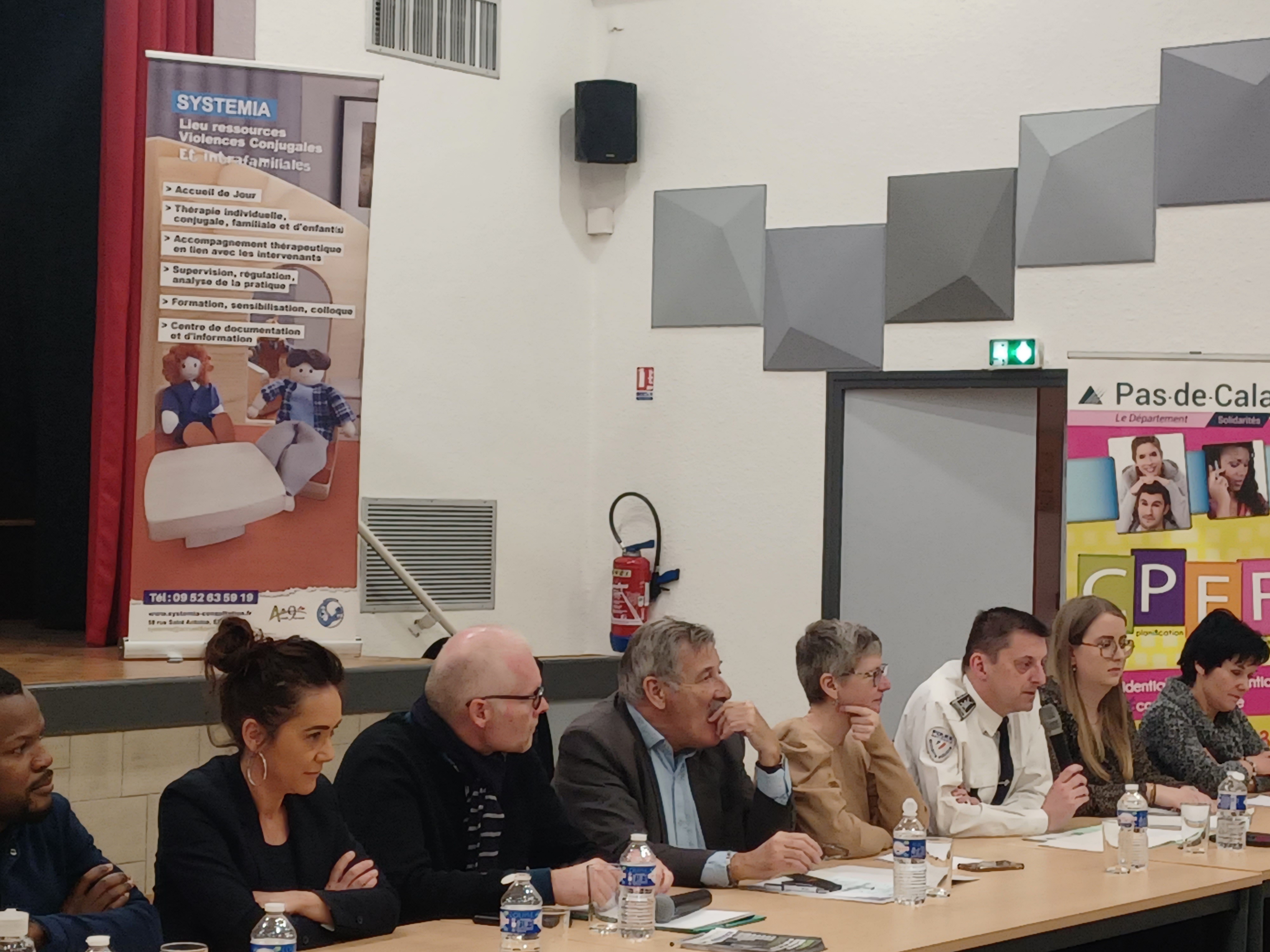 Pour en parler, des professionnels du Conseil Départemental (Laurence LOUCHAERT Vice-Présidente à l'égalité hommes-femmes), du Tribunal de Béthune (Anabelle MARGUERITE Substitut du Procureur), du Commissariat Central de Lens (Arnaud JUBLIN Commissaire Divisionnaire), des services de la PMI, de l'association 9 de Cœur ou de Systémia. Mais aussi de la Maison de la Parentalité et des associations œuvrant sur le territoire de Lens-Liévin.