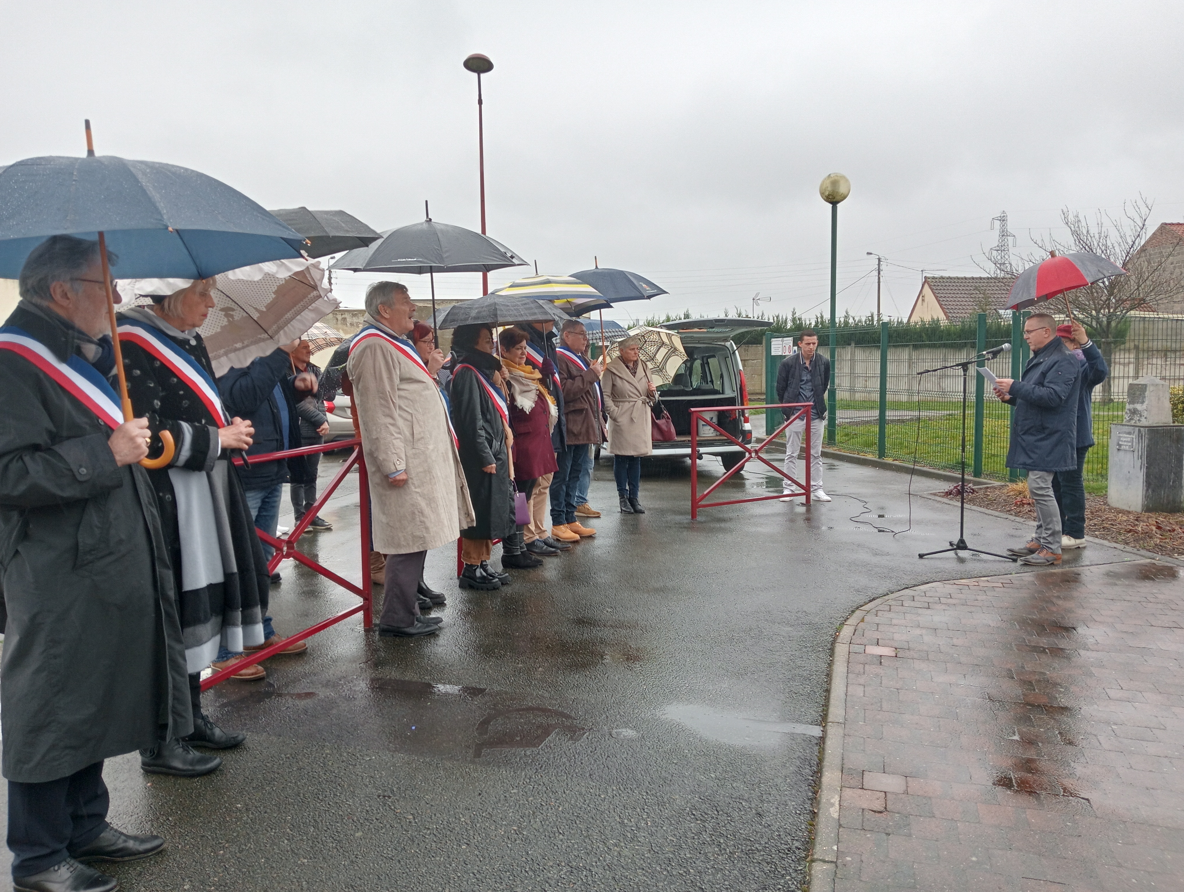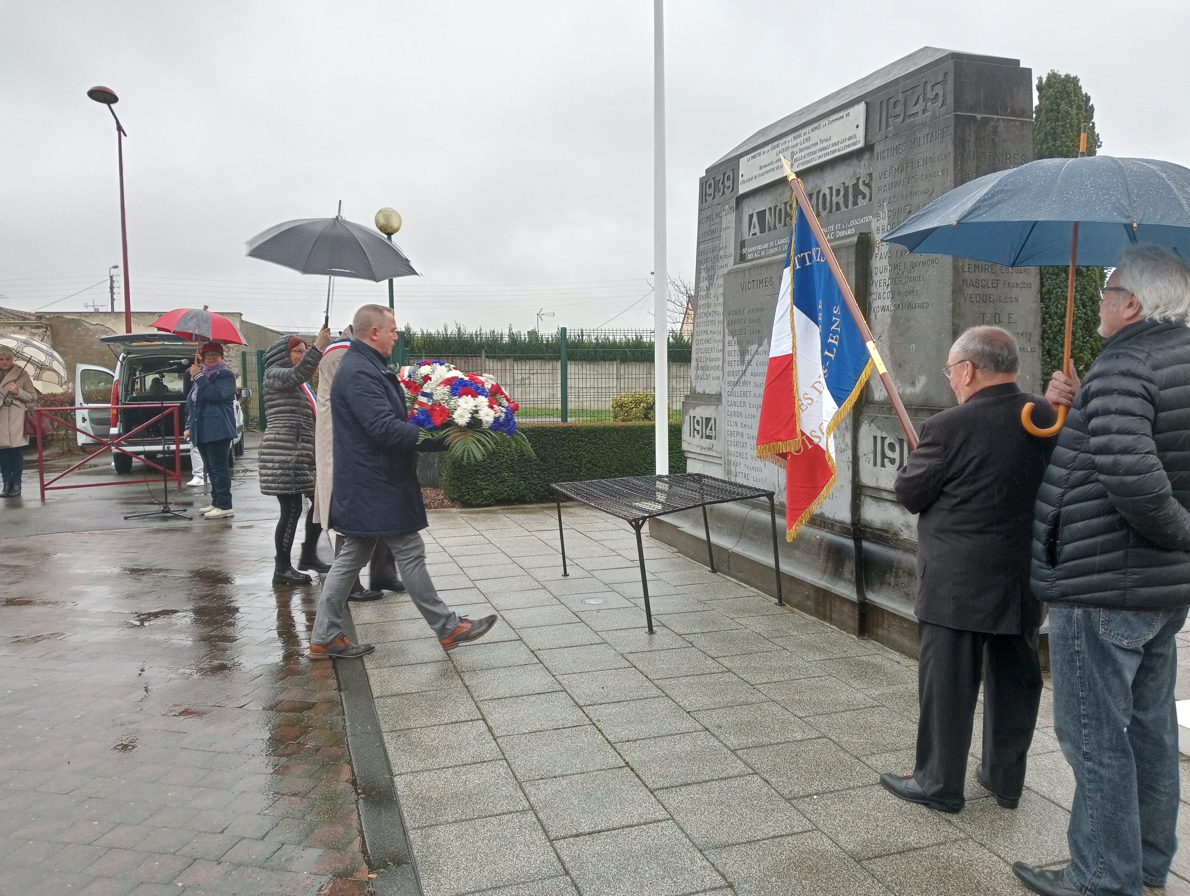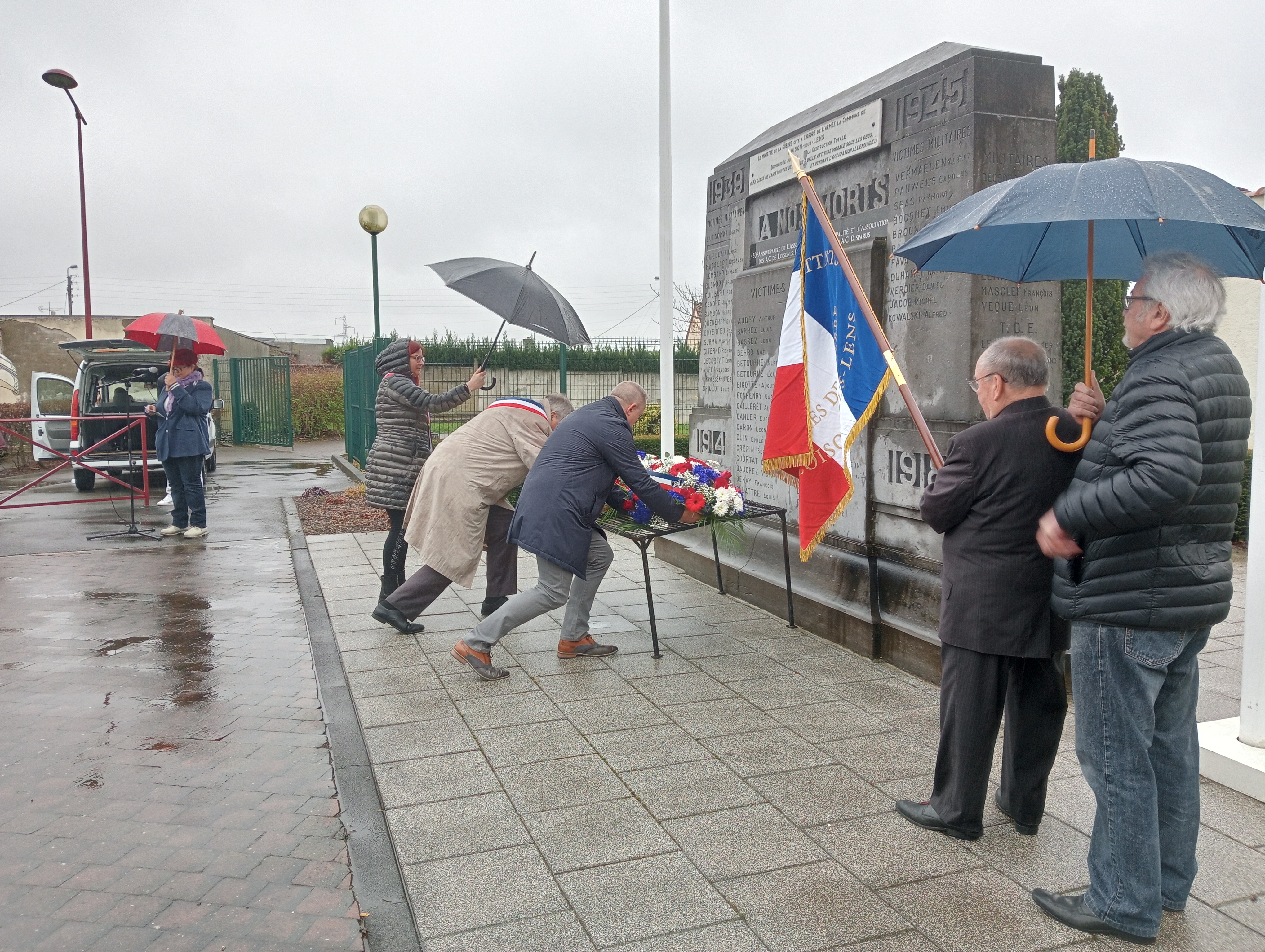 Malgré la pluie, Élus et anciens combattants se sont réunis à la cité 8 avec leurs homologues de Vendin à l’occasion d’une matinée solennelle.