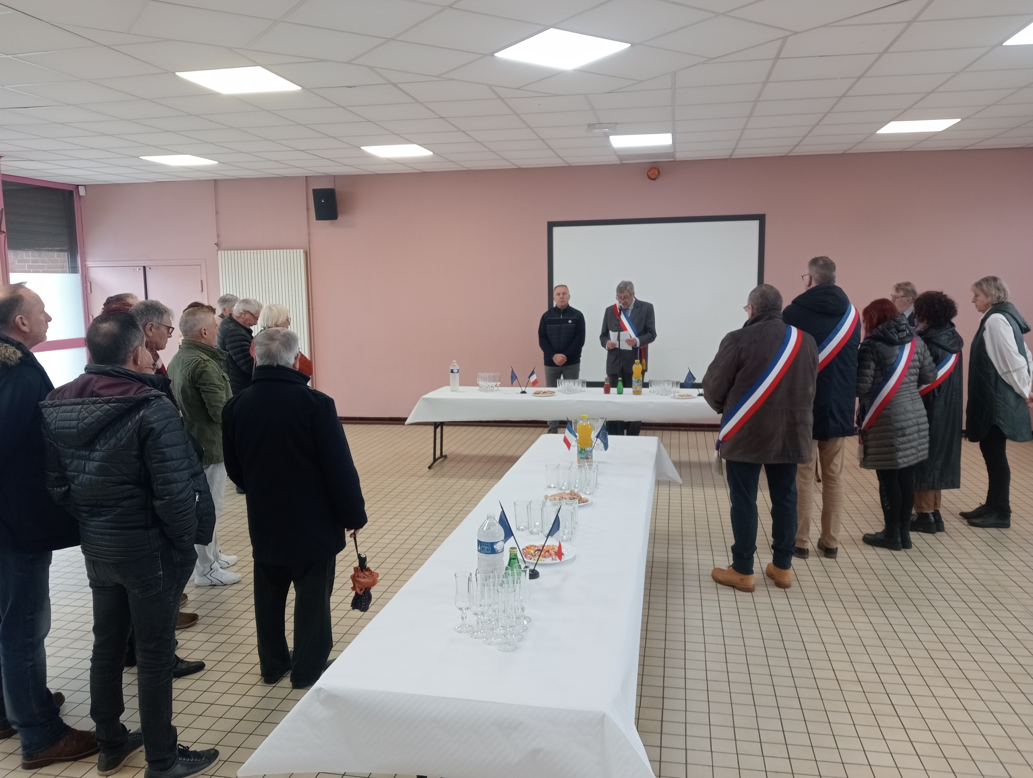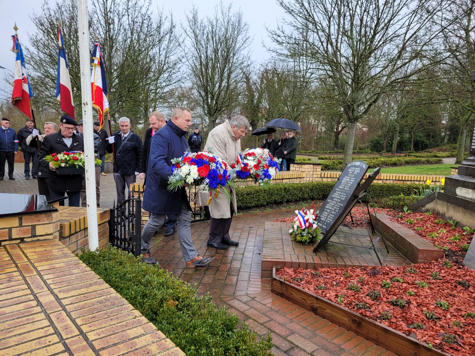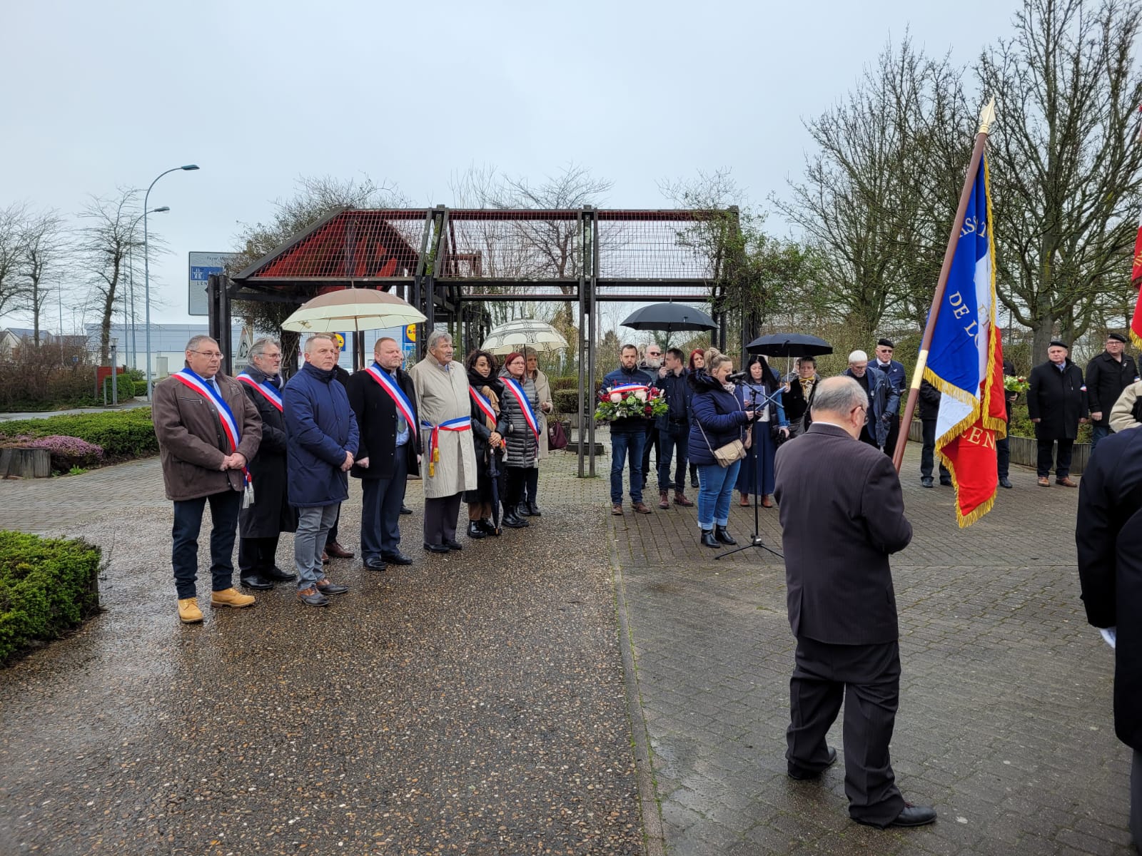 Malgré la pluie, Élus et anciens combattants se sont réunis à la cité 8 avec leurs homologues de Vendin à l’occasion d’une matinée solennelle.
