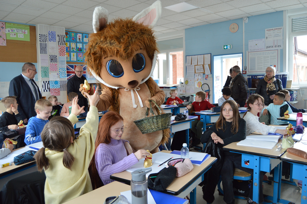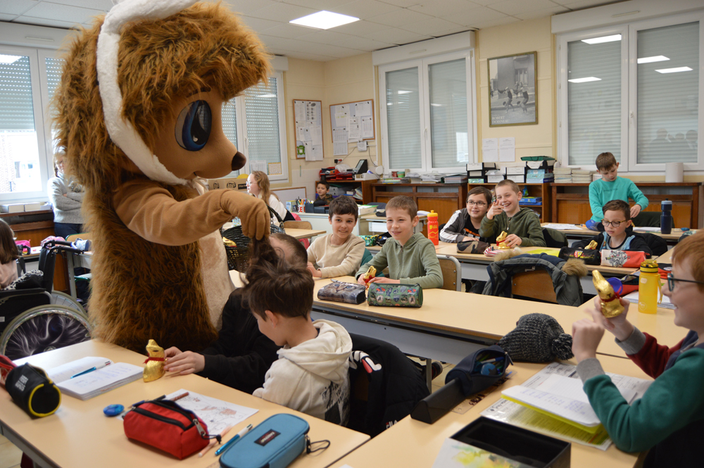 Vendredi 7 avril, Nino s'est rendu dans les établissements scolaires de la ville afin d'offrir un lapin en chocolat aux écoliers. Au total, 506 friandises chocolatées ont ainsi été distribuées ! Pour ce faire, les élus loisonnais en charge des écoles et de la jeunesse étaient présents pour accompagner notre hérisson préféré. Coiffé de ses oreilles de lapin, notre héros a trouvé de la joie, des cris, des câlins et de nombreux checks dans chaque école.