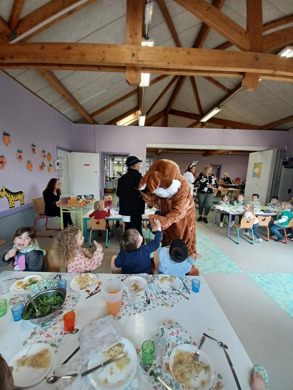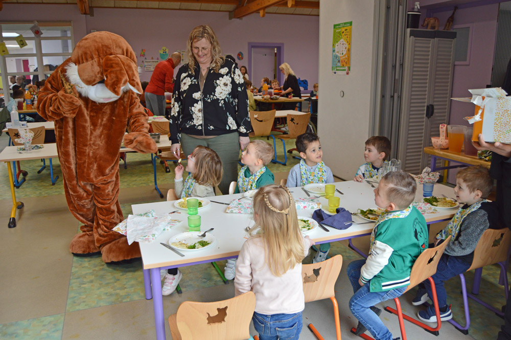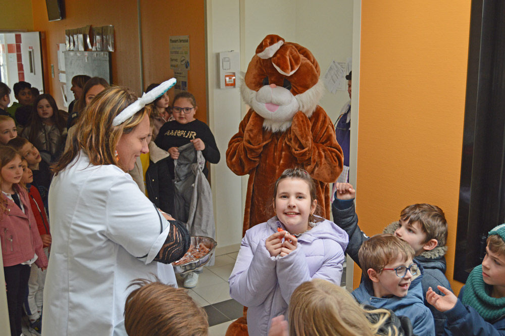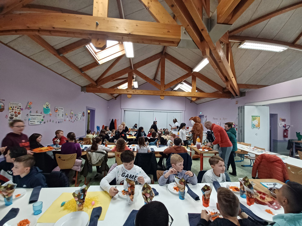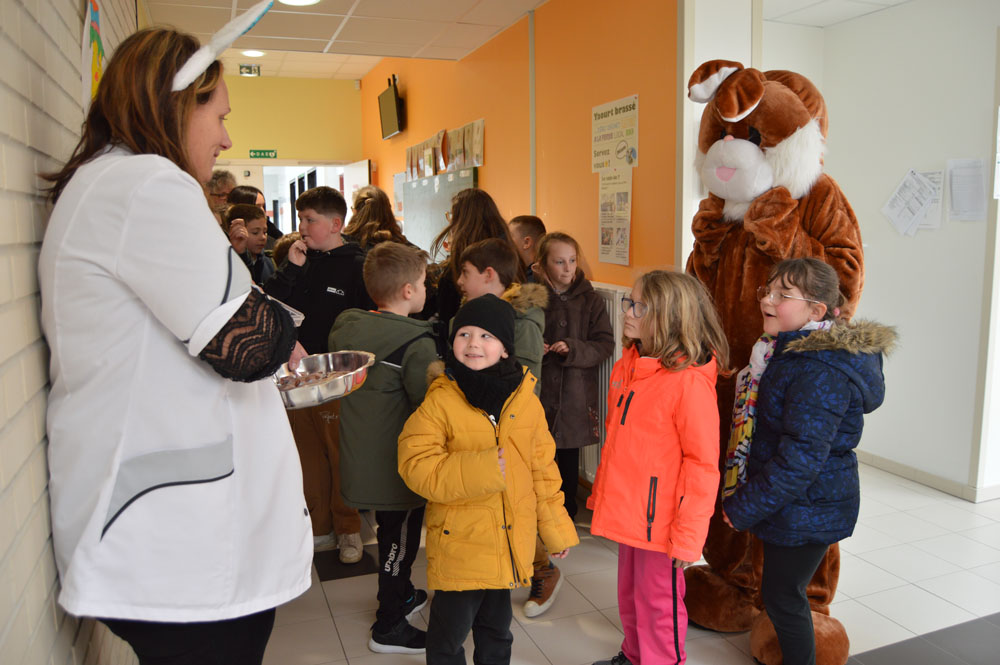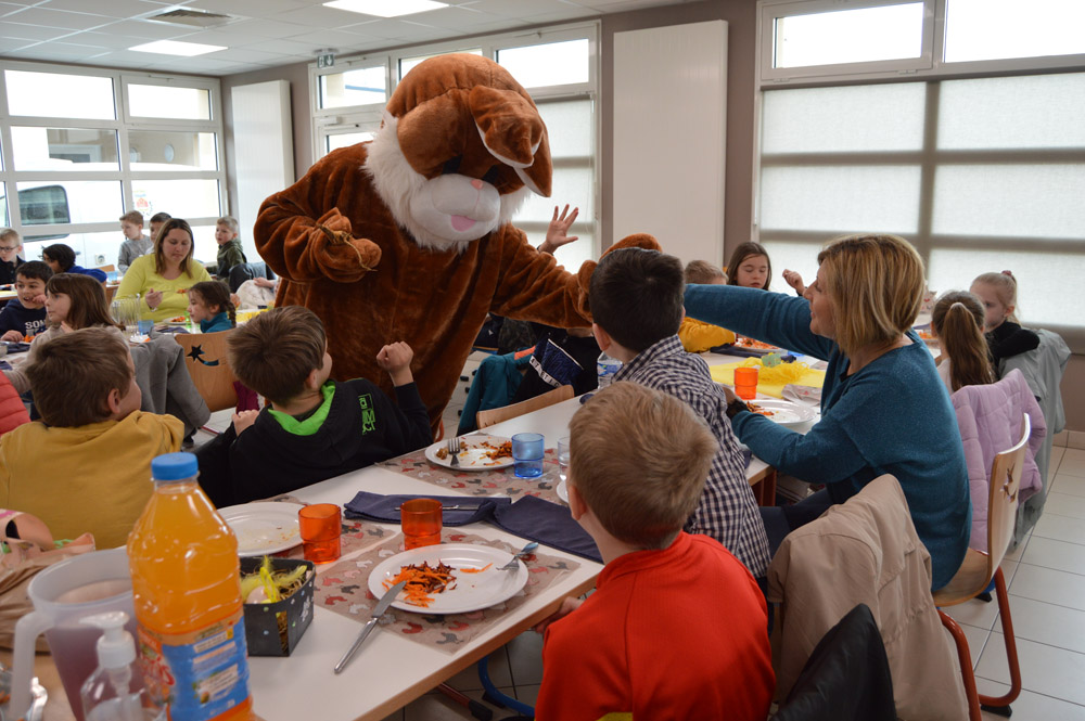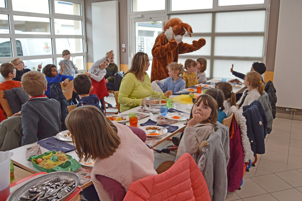 Il y avait également de l'effervescence dans les cantines scolaires ce même jour. Le lapin de printemps est venu offrir des chocolats aux enfants. Les agents municipaux avaient décoré les tables et les salles de restauration pour l'occasion. Un repas de fête a aussi été servi dans une ambiance festive et légère.