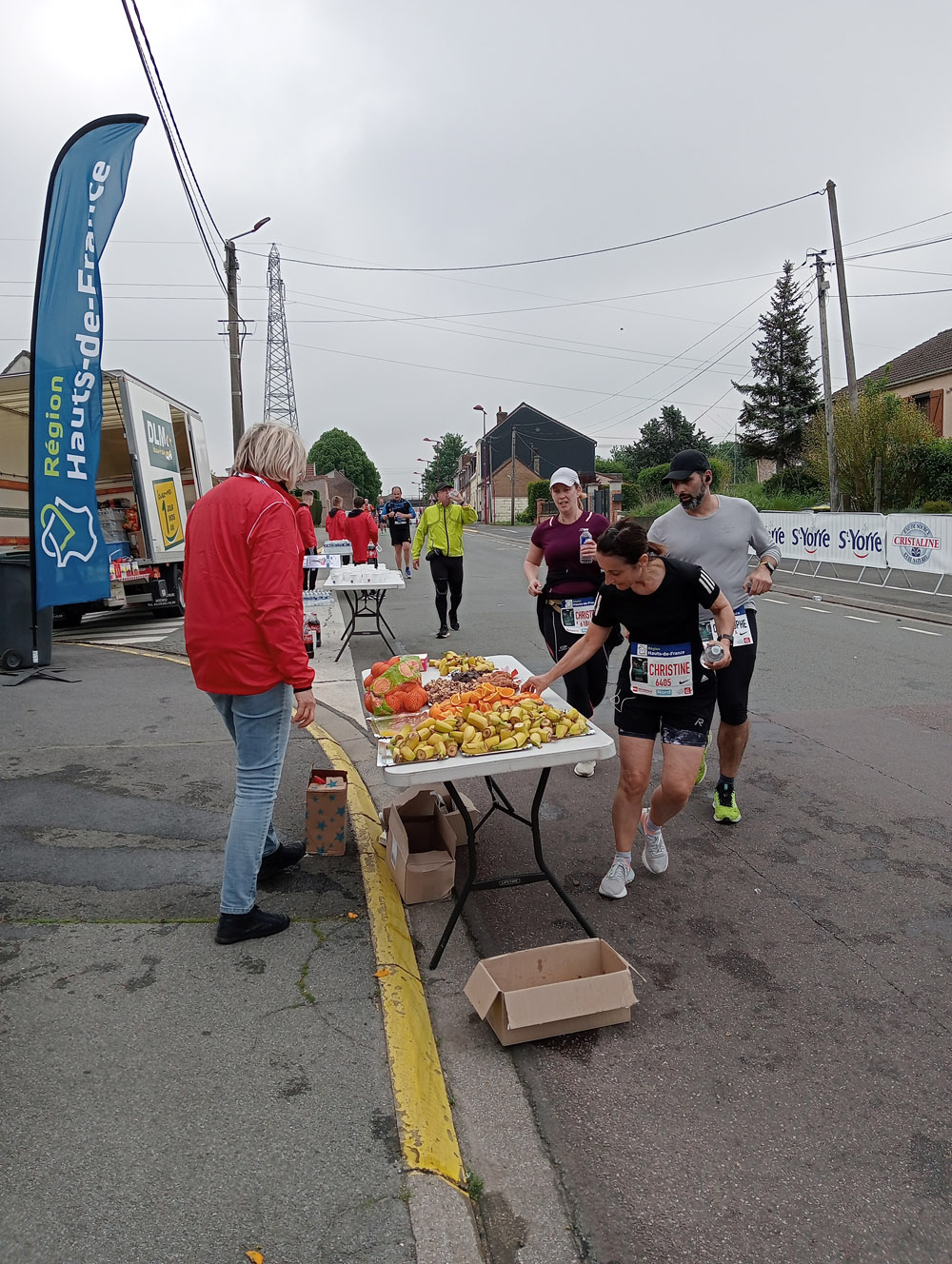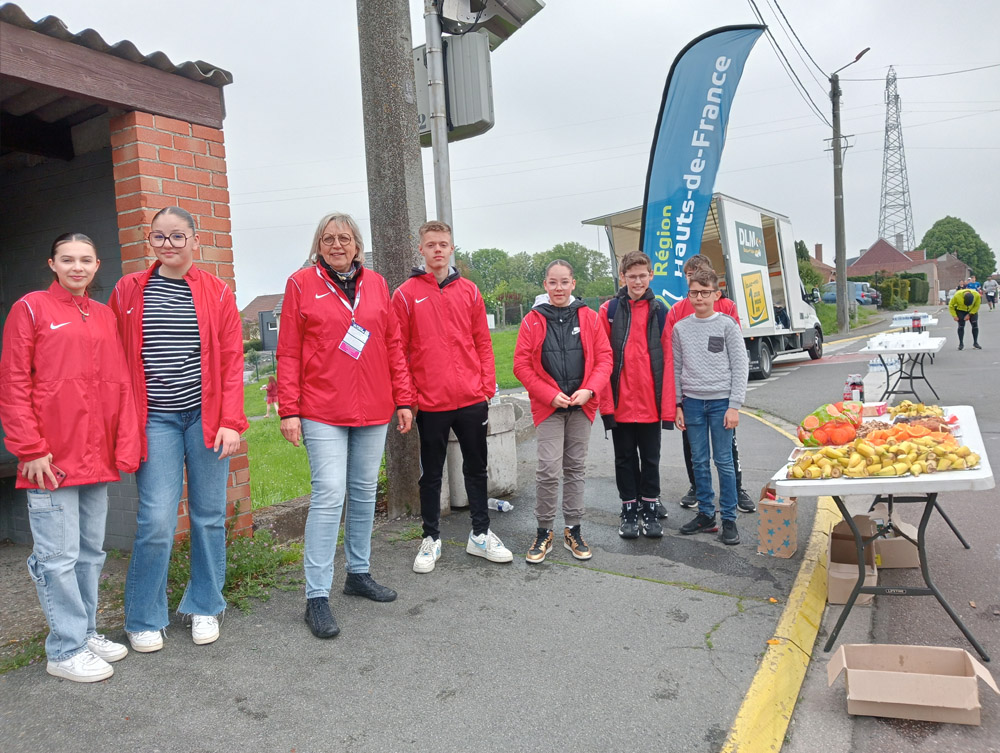 Afin d’assurer la sécurité des coureurs, de nombreux bénévoles ont quadrillé le périmètre afin d’orienter les automobilistes vers d’autres routes. De même, un point de ravitaillement était installé route de Lens et proposait eau, Cola, fruits, barres de céréales et chocolats aux marathoniens. Les adolescents du Centre d’Animation Jeunesse ont d’ailleurs pris grand soin à maintenir ce point d’arrêt accueillant et bien fourni.