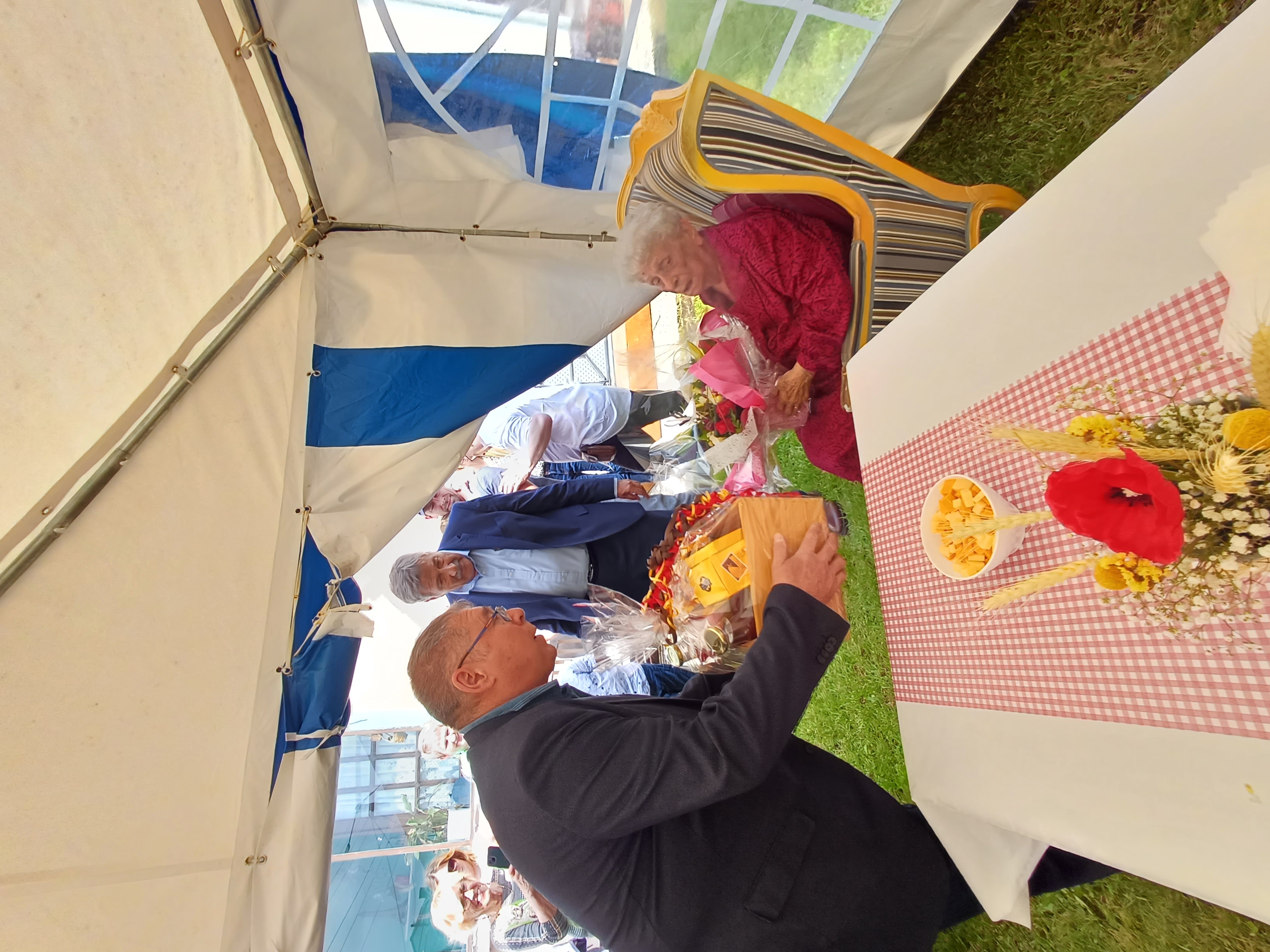 La Municipalité était ainsi invitée à venir fêter ce jour heureux en présence de ses proches. Elle a reçu de nombreux cadeaux, dont un bouquet de fleurs de la part de Monsieur le Maire et un panier garni offert par l’équipe d’Anim’le 8. Une bien belle journée pour tous chargée en émotion.