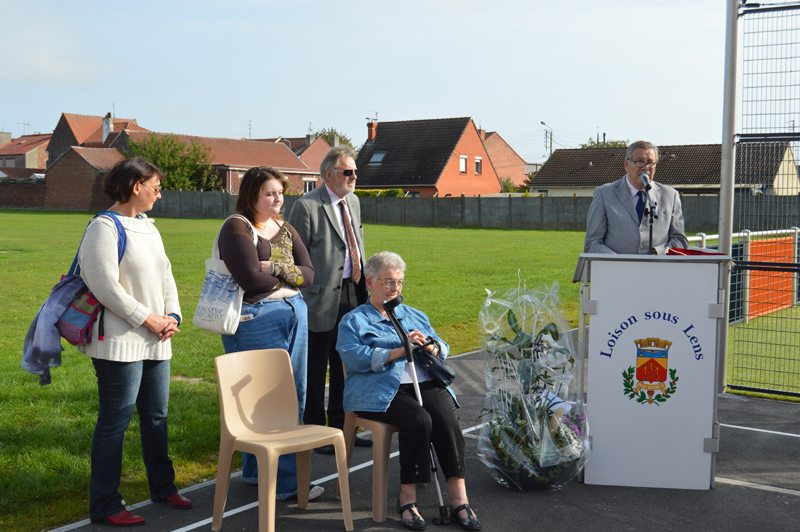 Monsieur le Maire était accompagné de Jacqueline, veuve de Michel, de sa fille Nathalie et de sa petite-fille Raphaëlle lors du dévoilement de la plaque officielle du site. La cérémonie s’est achevée après une démonstration du LAC Basket et de l’ASL Football.