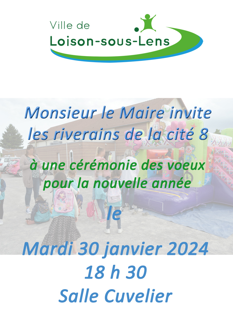 - La cité 8 : mardi 30 janvier 2024 à 18h30 à la salle Cuvelier