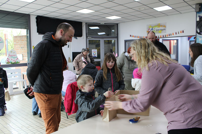 Pour l'occasion, Nino était accompagné du lapin de Pâques. Ces deux personnages ont aidé les jeunes à remplir leur panier et se sont prêtés au jeu des séances photo. Câlins, sourires et instants de complicité ont comblé les bambins !