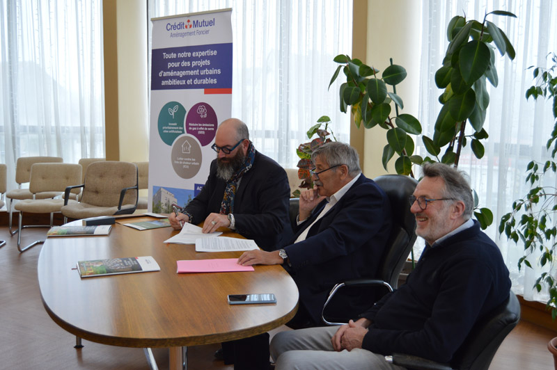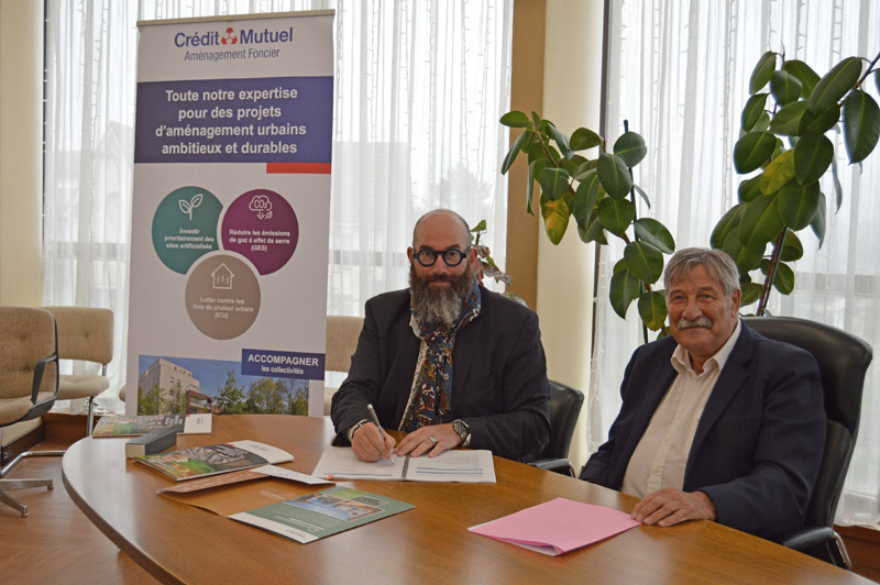 Le 7 mai en la Maison Commune se sont réunis Monsieur Daniel KRUSZKA, Maire, et Monsieur Cyril BLASZCZYK, directeur d’agence du Crédit Mutuel Aménagement Foncier, afin de cosigner le traité de concession pour l’écocité 8 en présence des différents acteurs concernés par ce dispositif.