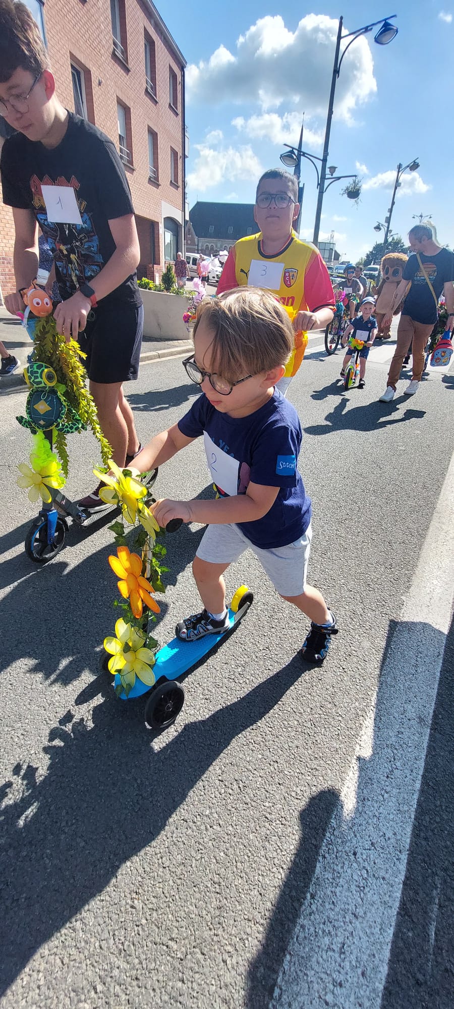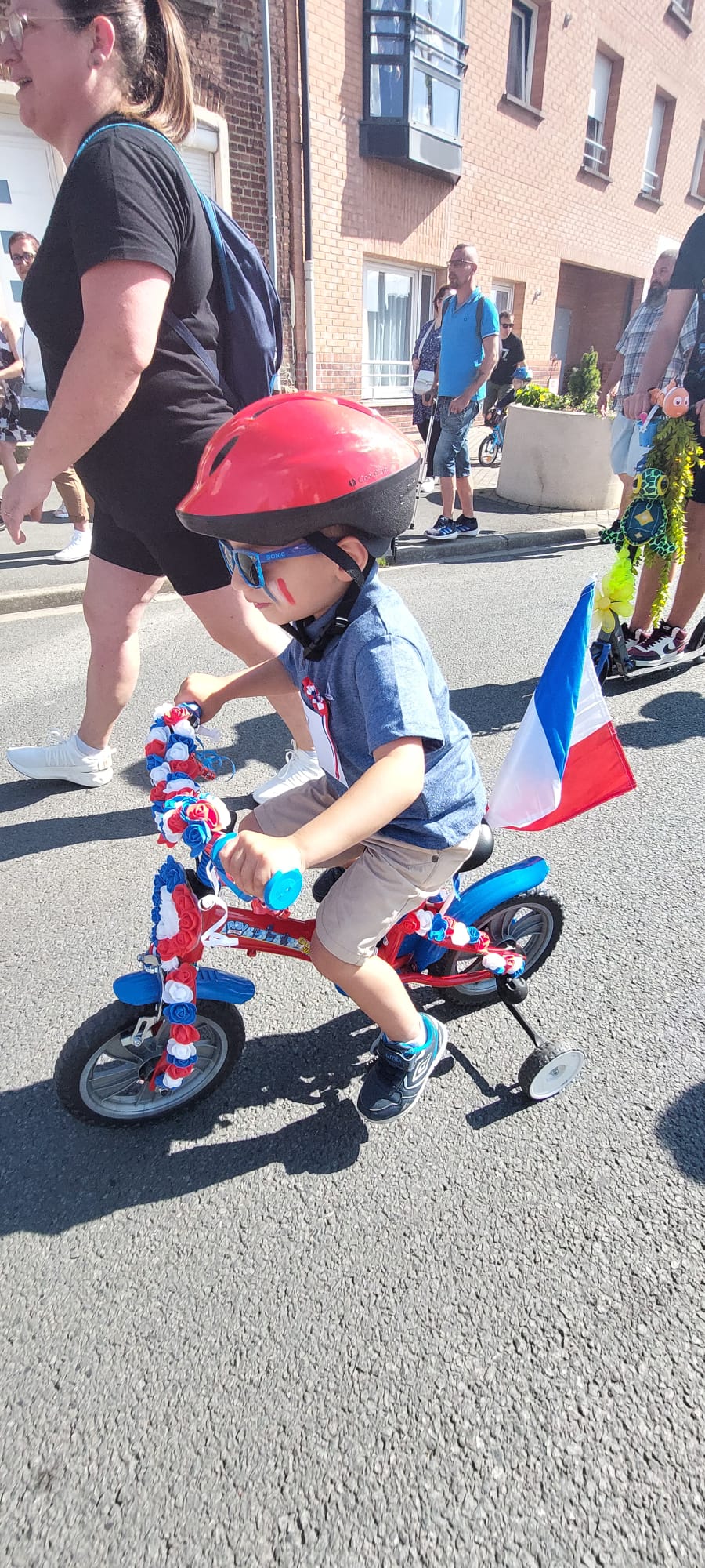 Cette année, la Municipalité a souhaité remettre au goût du jour une vieille tradition loisonnaise en organisant un défilé de vélos et trottinettes fleuris. Le cortège parti de la place du centre-ville a terminé son parcours à la base de plein air et tous en entonné la Marseillaise. Un clin d’œil à l’AOL Gym qui a participé activement à cette animation en accompagnant le cortège de gymnastes en bleu, blanc et rouge.
