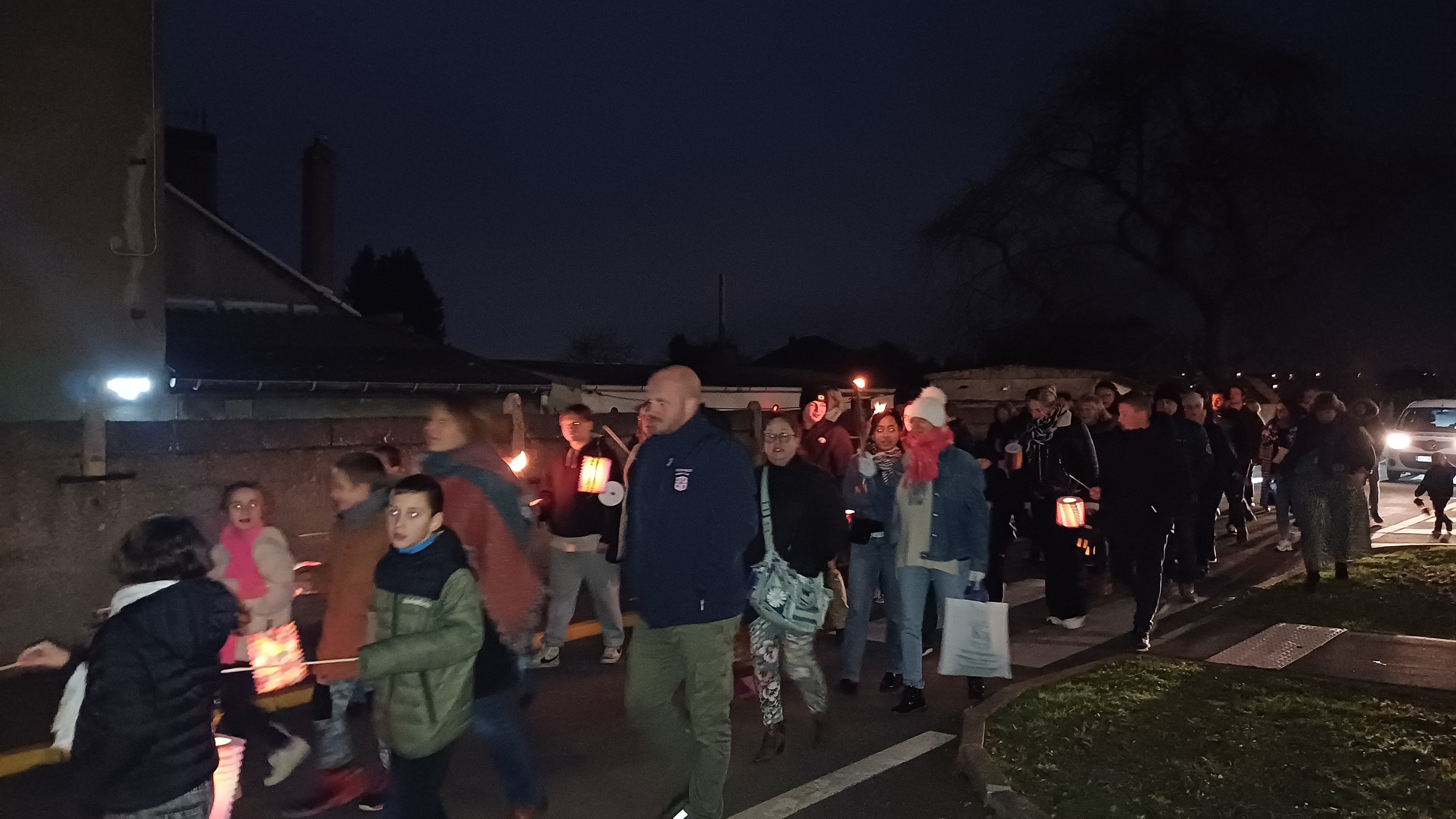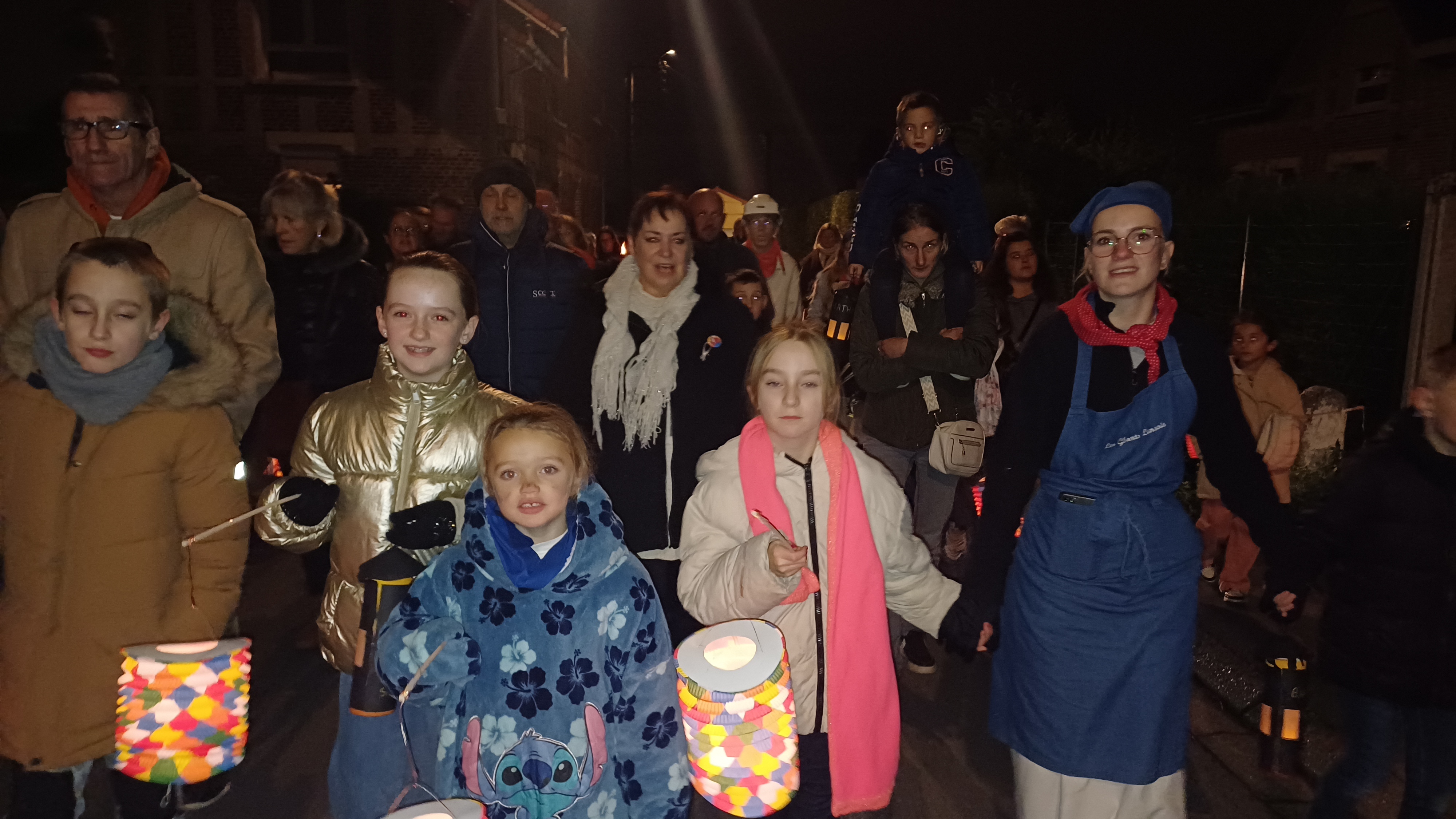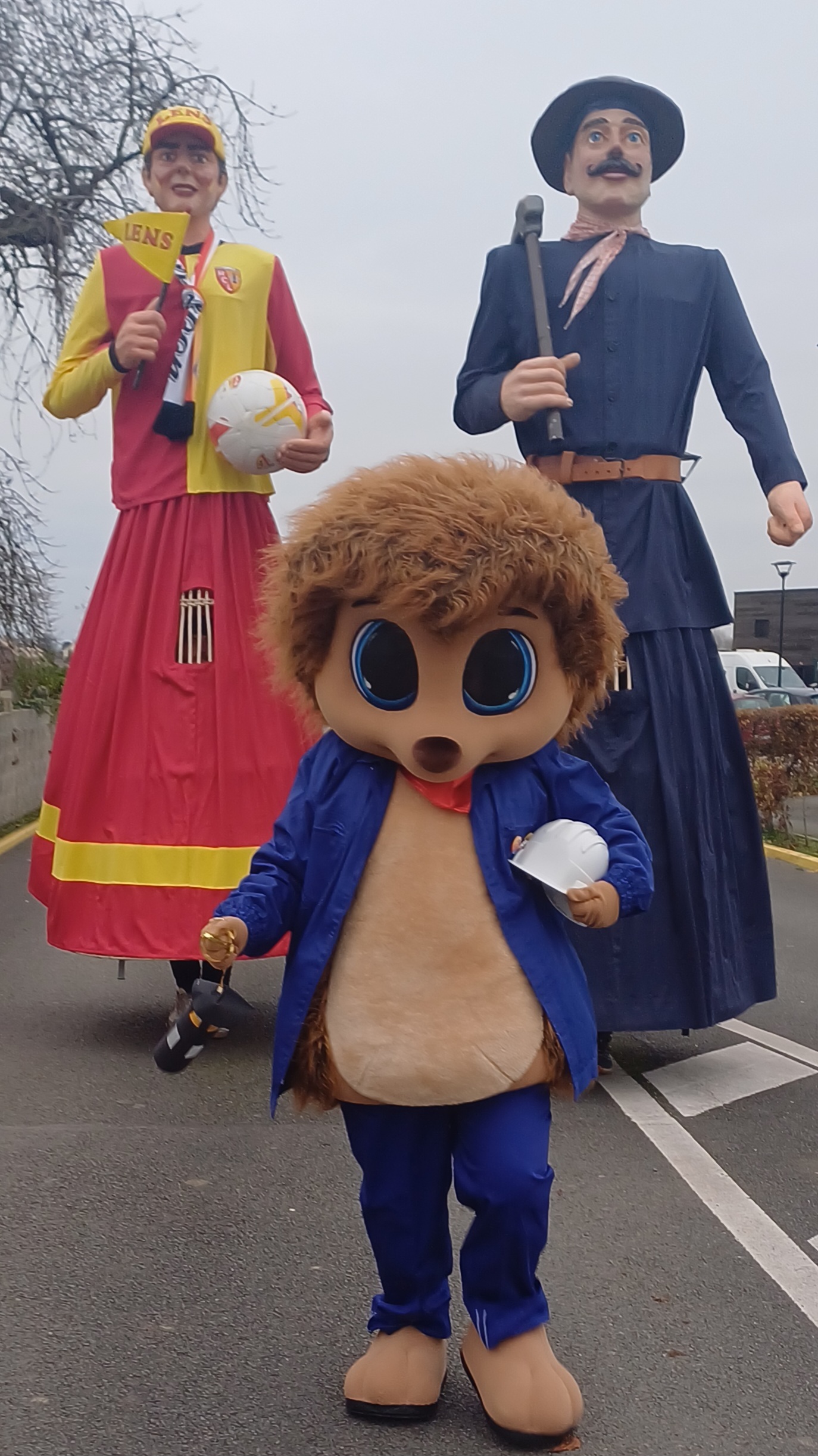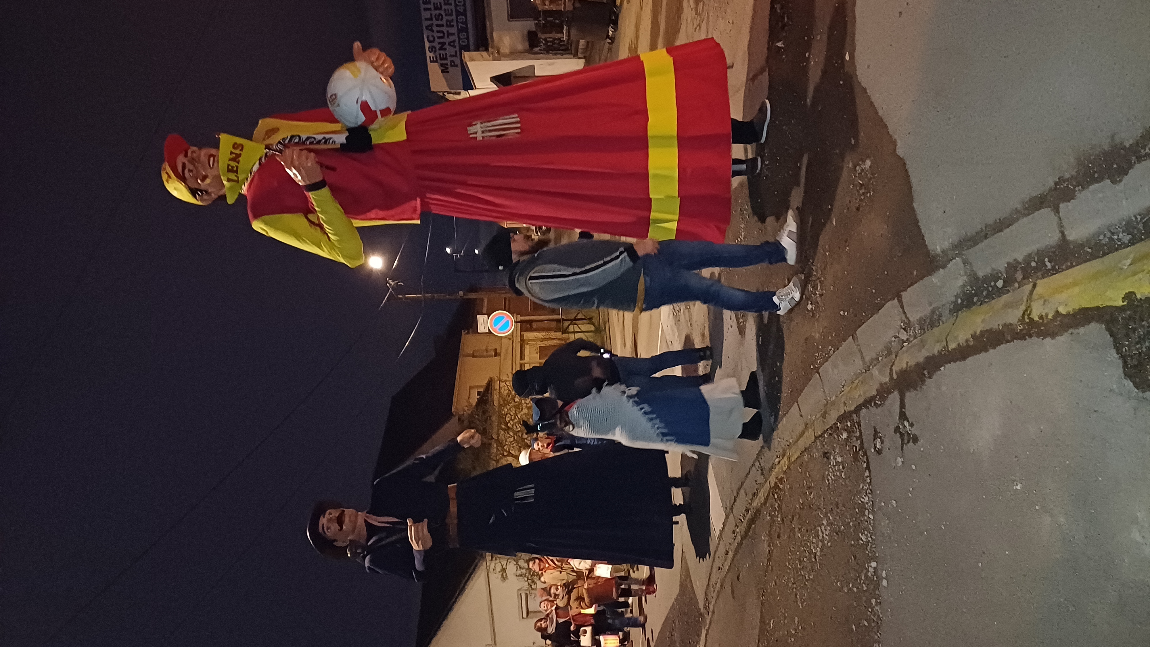 Enfin, tous se sont munis de lampions ou de torches embrasées pour prendre le départ d’une retraite aux flambeaux. Le cortège était conduit par Nino, notre hérisson préféré, paré de son costume de mineur dans un char à l’effigie des mines. De plus, nous avons eu la chance exceptionnelle d’être accompagné de Taradéruze et Ch’Meneu, deux personnages de l’association Les Géants Lensois.