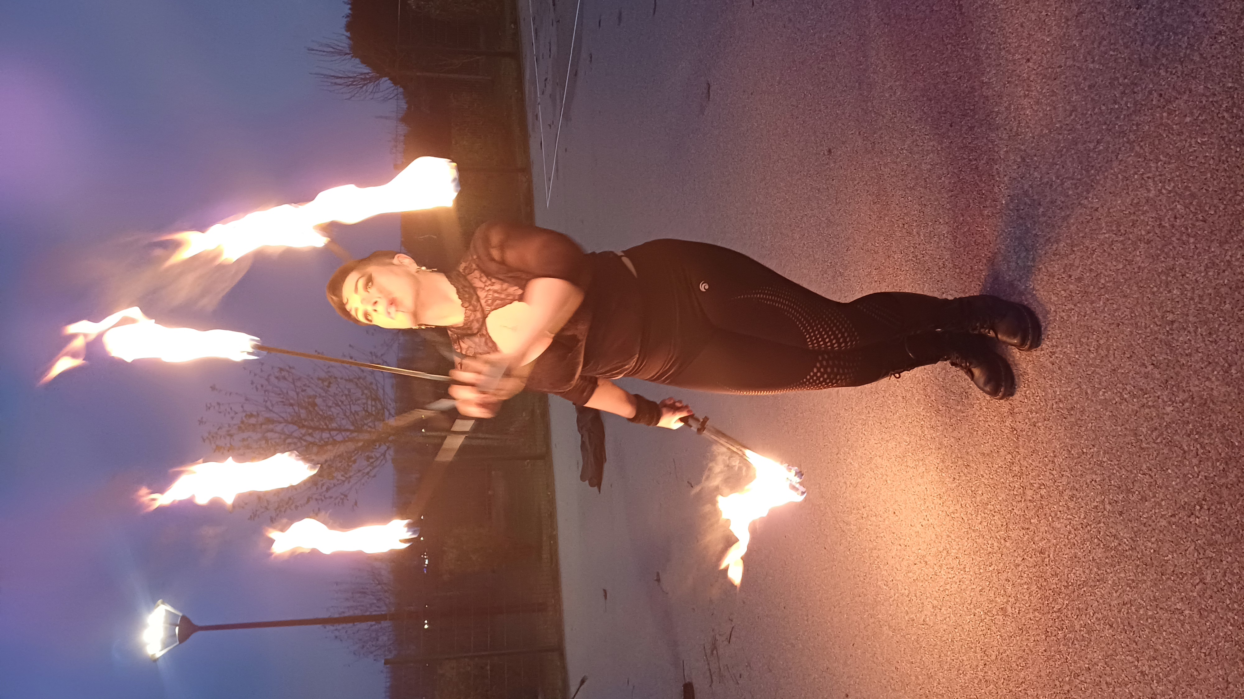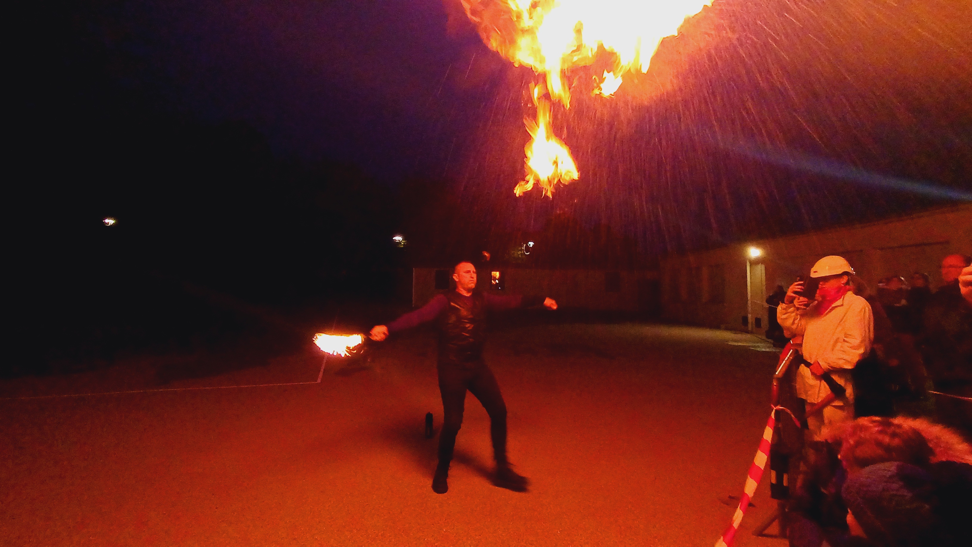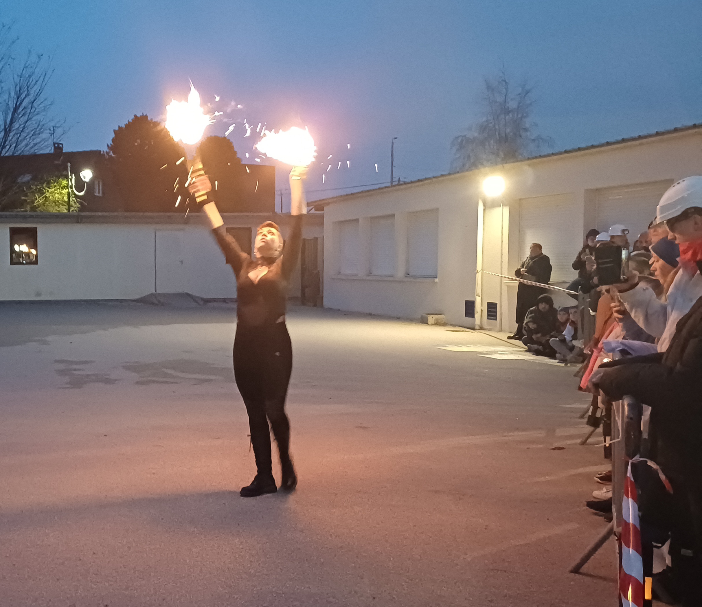 Puis, le public s’est rassemblé à l’extérieur pour assister au spectacle de « Vade Retro Cracheurs de Feu ». Le show a réchauffé l’atmosphère tant par la musique que par la qualité des figures exécutées par les deux artistes.