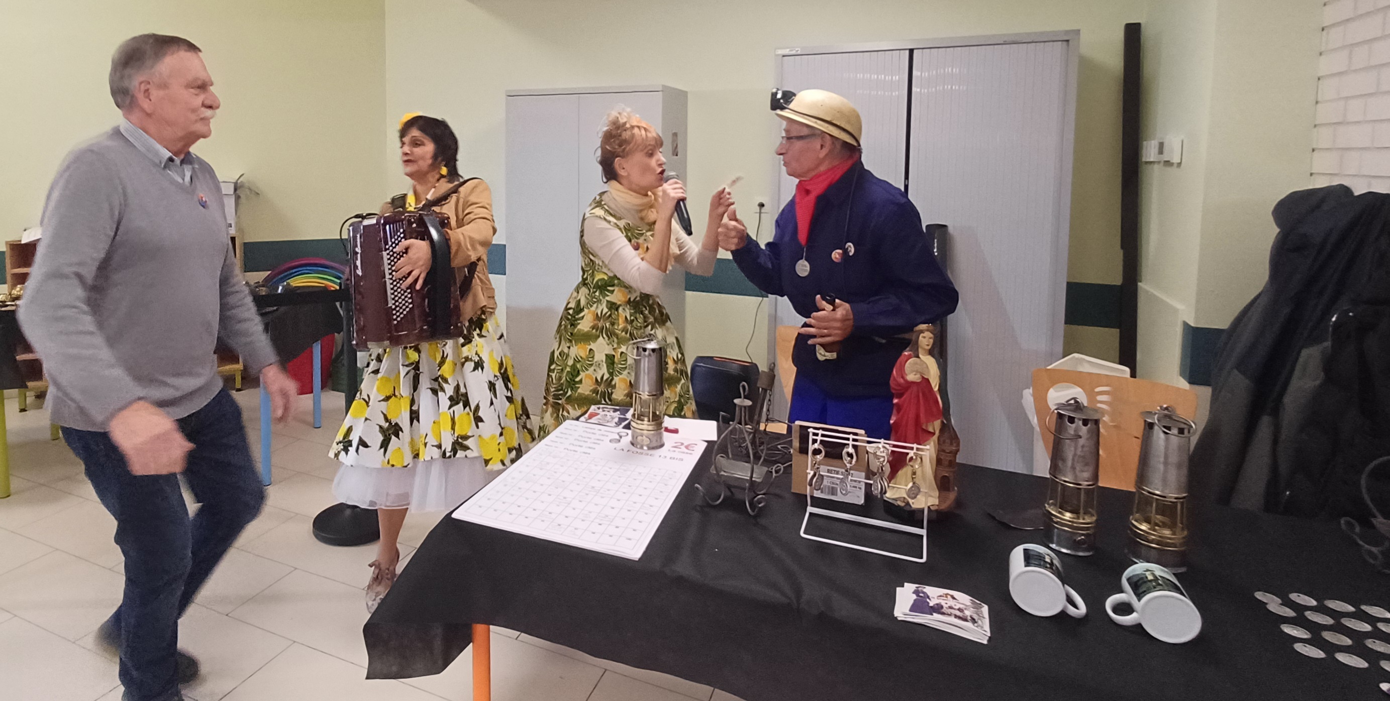Les visiteurs ont eu accès à une exposition de lampes de mineurs et de photos tandis que les plus jeunes ont fabriqué leur propre lampe au cours d’un atelier manuel. Marielle DUROULE et Claude CHEVALIER ont interprété un répertoire de chansons d’autrefois l’après-midi durant et les organisateurs de la manifestation ont restauré les visiteurs par un « goûter pour tous » avec des parts de tartes au sucre et du chocolat chaud.