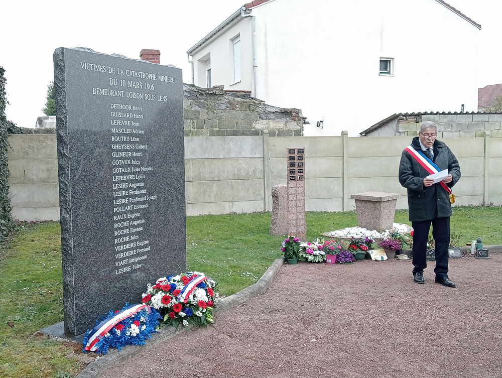 Le 10 mars, jour de deuil et de tristesse dans notre histoire régionale, fait référence à la catastrophe minière la plus meurtrière d’Europe. Elle est appelée la catastrophe minière de Courrières en référence à la compagnie des mines de Courrières qui exploitait le gisement de charbon du bassin minier entre Lens et Courrières. Ce coup de grisou fit au total 1 099 morts en 1906, dont 22 Loisonnais.