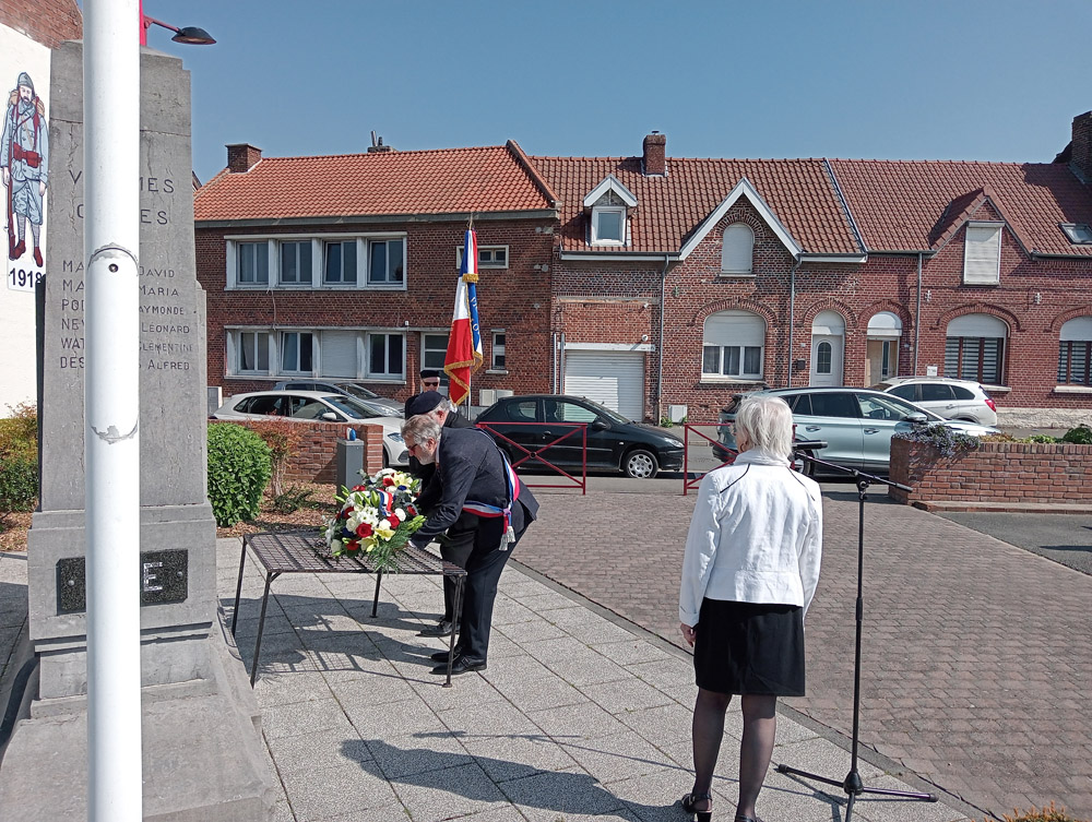 Monsieur Jacky LELONG, 1er Adjoint au Maire, et Monsieur Didier LEFEVERE, Président des ACVG, ont déposé deux gerbes de fleurs avant d’observer une minute de silence. Ils ont ensuite chacun prononcer un discours de paix et d’hommage pour ne pas oublier cet épisode tragique de notre Histoire.