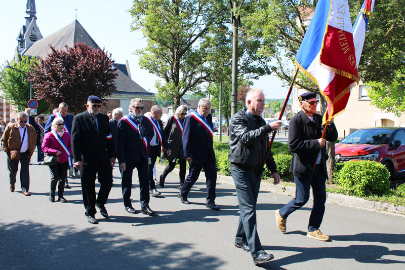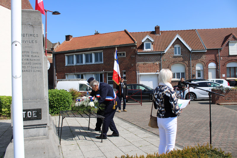 Une fois les gerbes de fleurs déposées et une minute de silence observée, les participants ont repris leur marche jusqu’au monument aux morts de la rue Léon Blum. M. Didier LEFEVERE, président des ACVG, a prononcé quelques mots. Monsieur Daniel KRUSZKA, Maire, en a fait de même à la salle Duhamel en clôture de cérémonie.