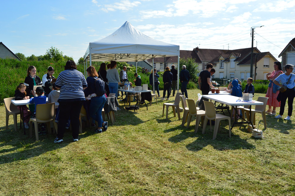 L’après-midi, les activités se sont concentrées dans les carrés potagers de l’école élémentaire de la cité 8. Un animateur Loisonnais a présenté le site aux enfants et à leurs parents en énumérant les tâches réalisées par les jeunes durant la pause méridienne pour entretenir ce jardin potager. Il a également prodigué des conseils en matière de jardinage et de lutte contre les nuisibles (frelons asiatiques, pucerons…). Un troc de plantes, de plants et de graines a aussi eu lieu entre les différents participants.