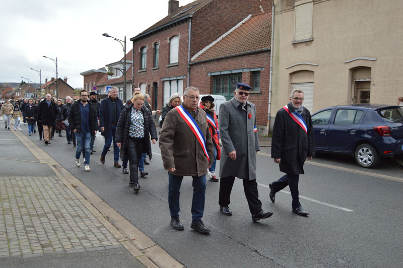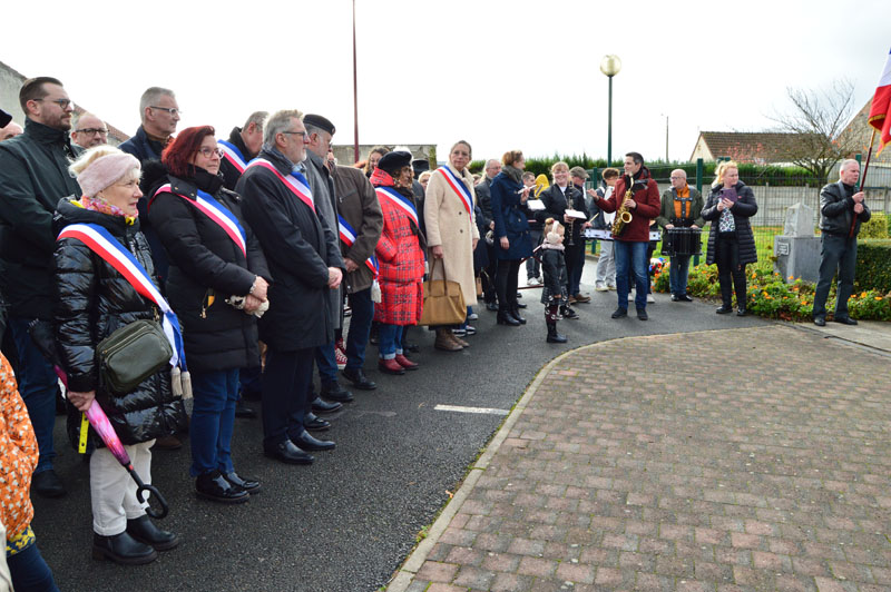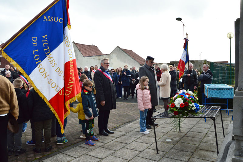 Elus et Loisonnais se sont regroupés au carré militaire du cimetière afin de déposer une gerbe de fleurs. Puis ils se sont dirigés vers le monument aux morts de la rue Léon Blum, conduits par les musiciens de l’Orchestre de l’Harmonie « La Jeunesse ».