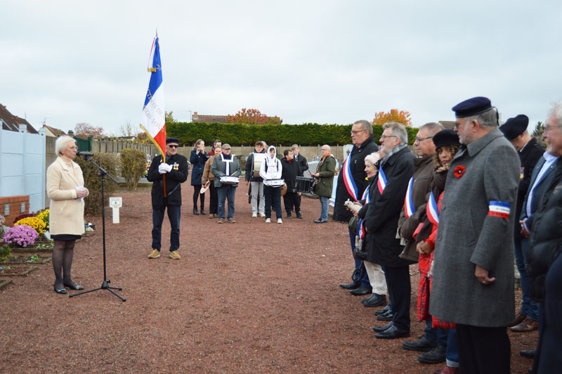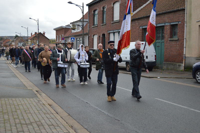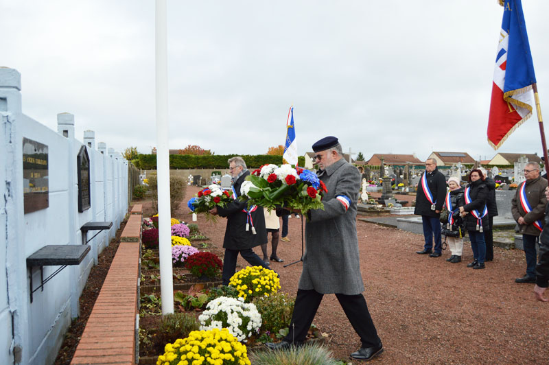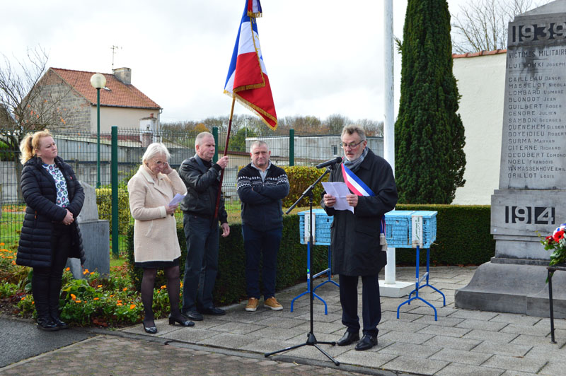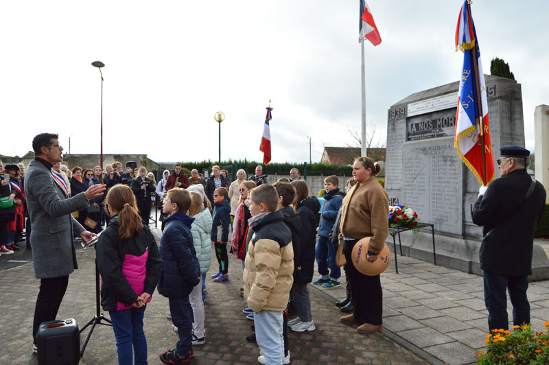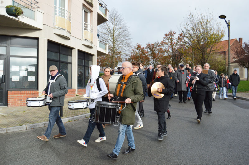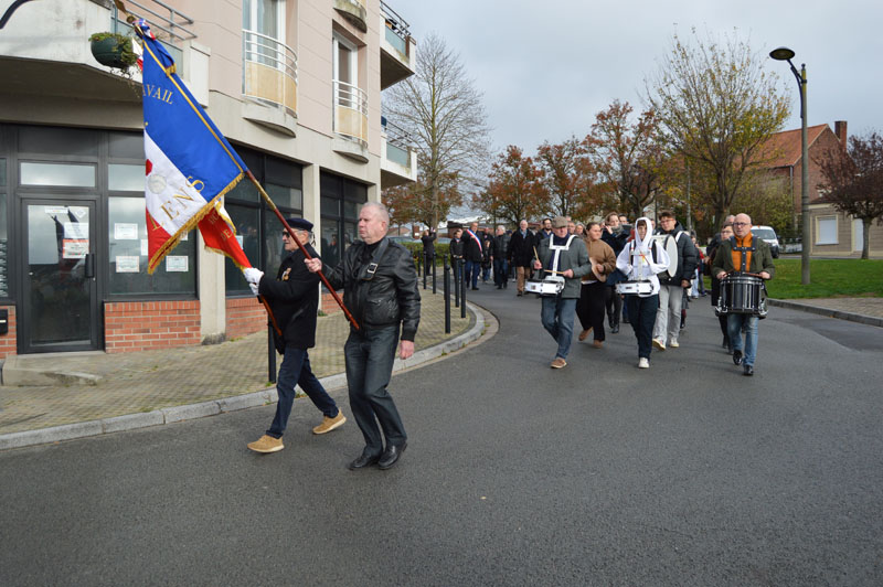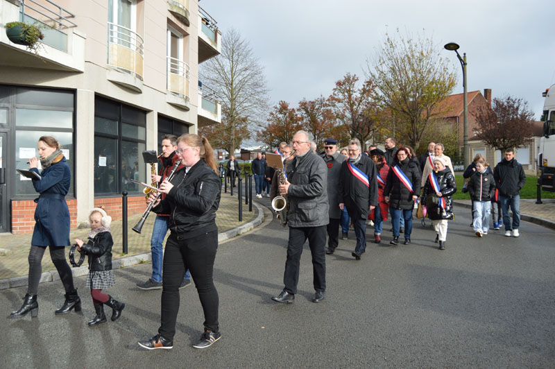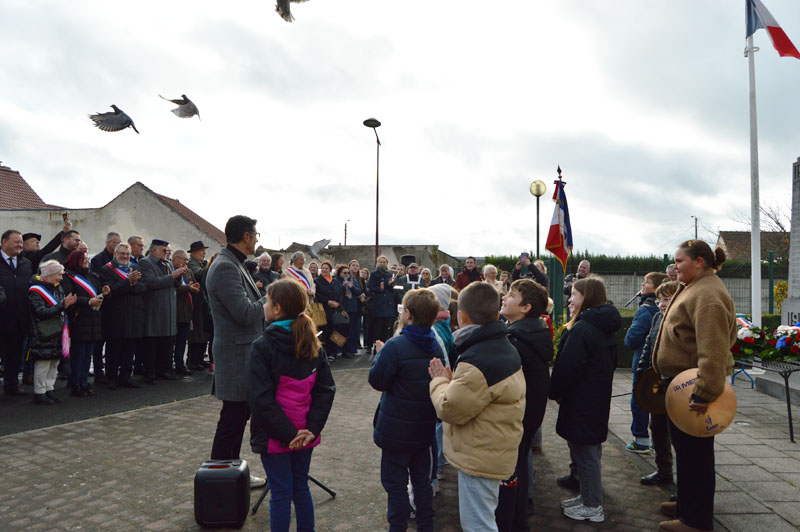 M. Didier LEFEVERE, président des ACVG, et Monsieur Jacky LELONG, 1er Adjoint au Maire, ont tous deux prononcé des discours de paix une fois que l’assistance a observé une minute de silence. Une vingtaine d’élèves de l’école L. Ventura a interprété deux chants sous la houlette de Sébastien LOPES, intervenant musical. L’Avant-Garde Colombophile de la commune était également présente et a effectué un lâcher de pigeons en fin de cérémonie.