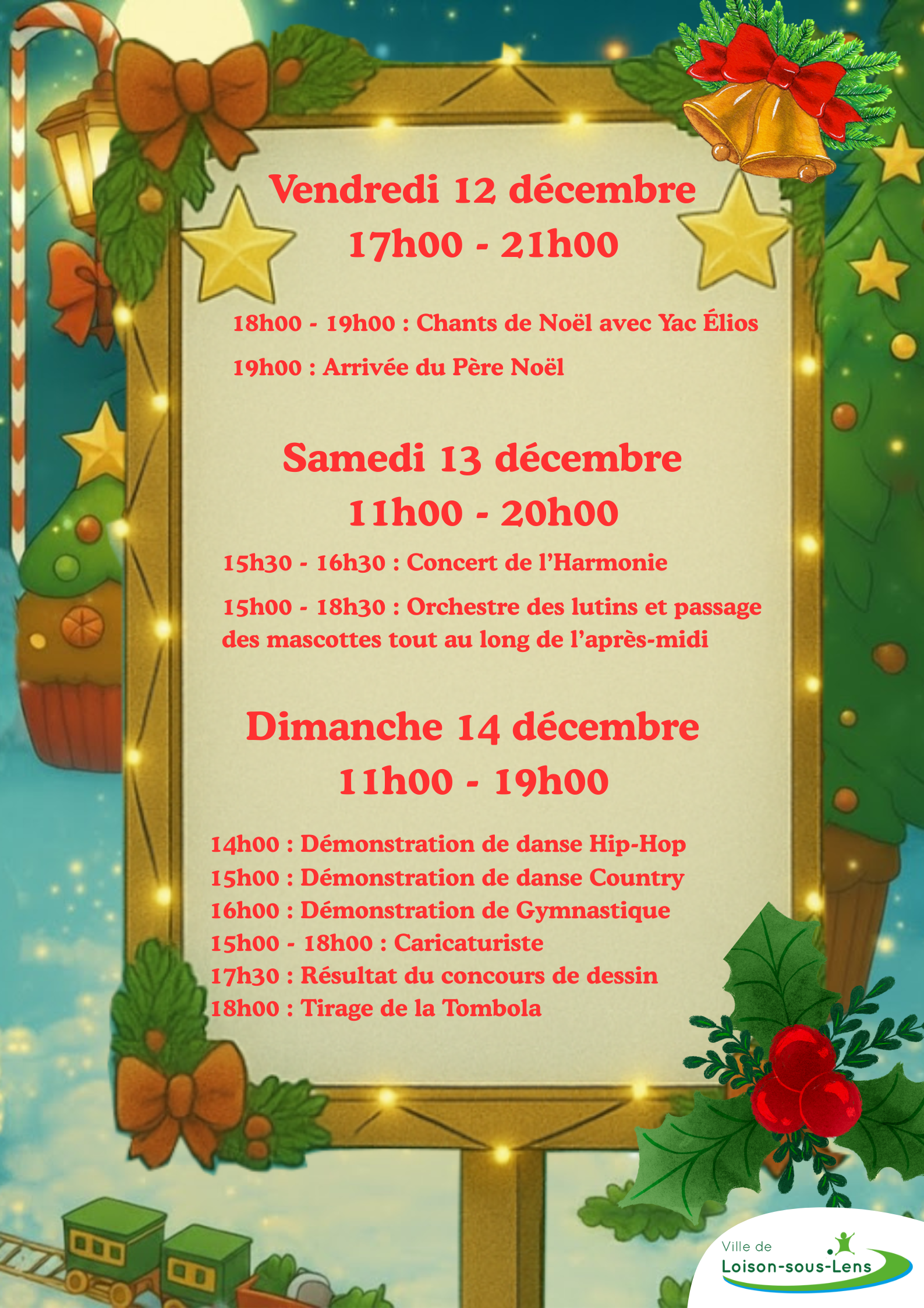 La Municipalité organise son traditionnel marché de noël du 12 au 14 décembre 2025 à la halle des sports Cyr Louis Raux. Artisans, commerçants et associations vous proposeront des articles de noël, de décoration et des idées cadeaux à l'approche des fêtes de fin d'année. De nombreuses animations viendront ponctuer ce week-end de festivités comme des démonstrations sportives, des concerts, des interventions pour les plus jeunes...